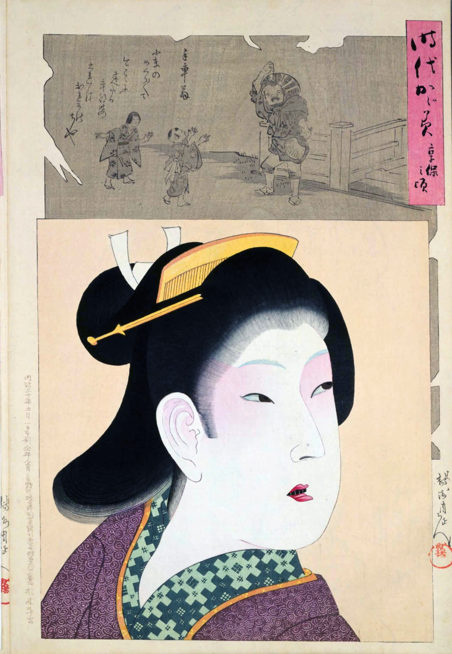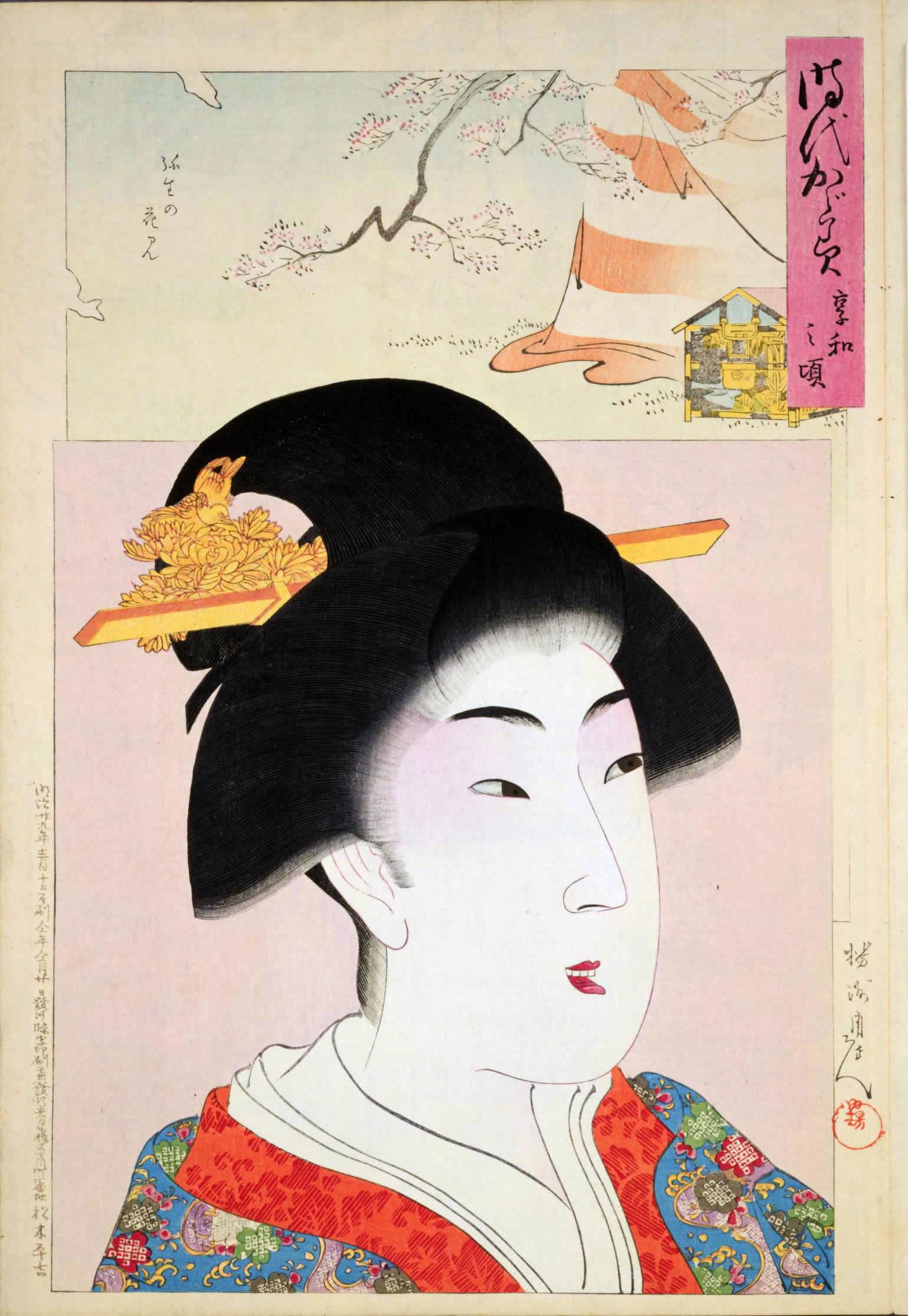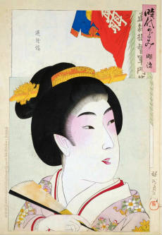 楊洲周延 (1838年・天保9年 - 1912年・大正元年)の『時代かがみ 』です。 - 明治29年・1896年から明治20年・1897年にかけて制作された、楊洲周延の美人画の代表作の一つとされます。