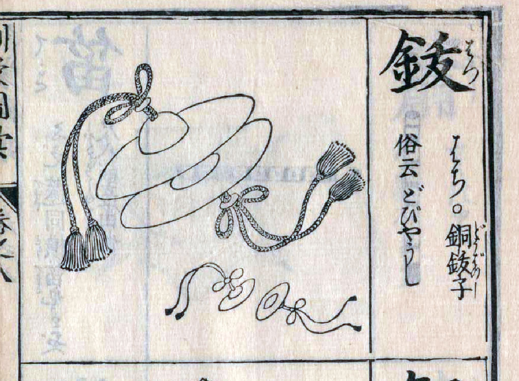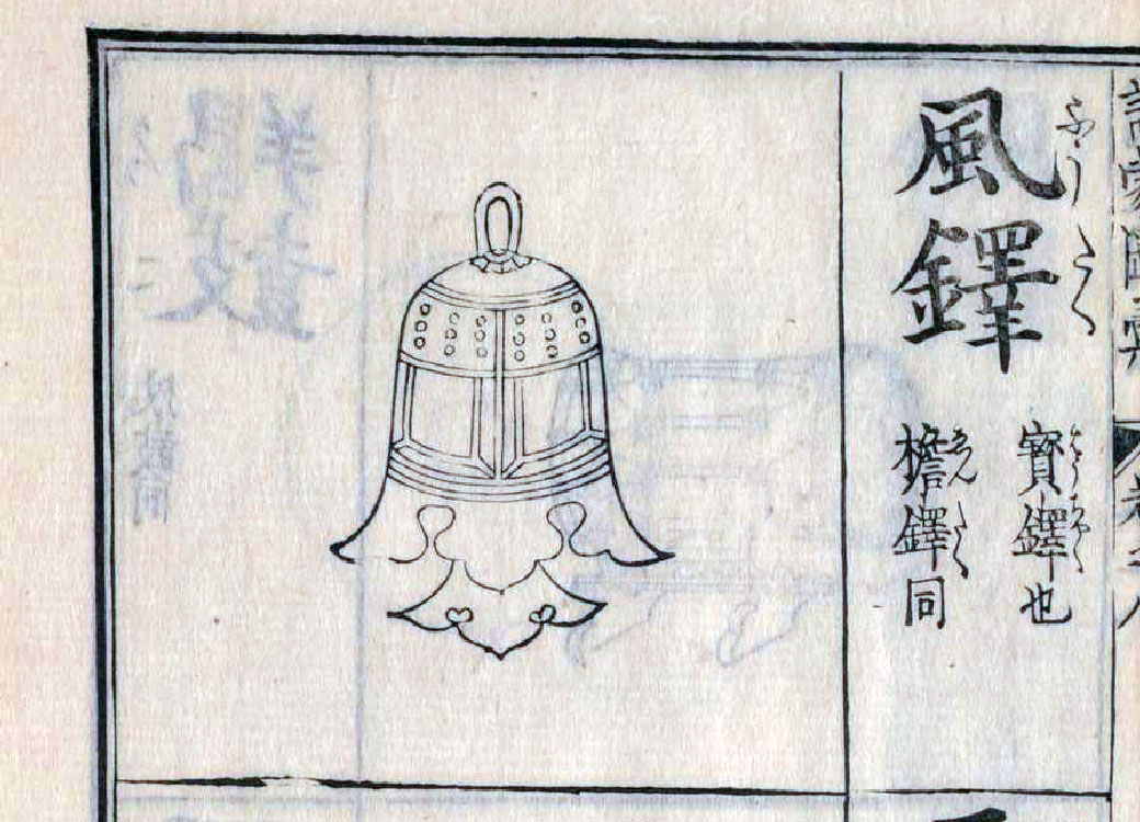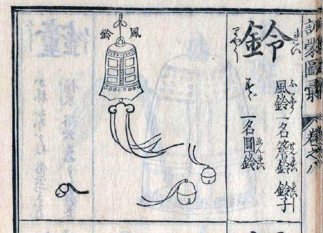 風鈴。一名簷鈴、鈴子、すず、一名、円鈴。