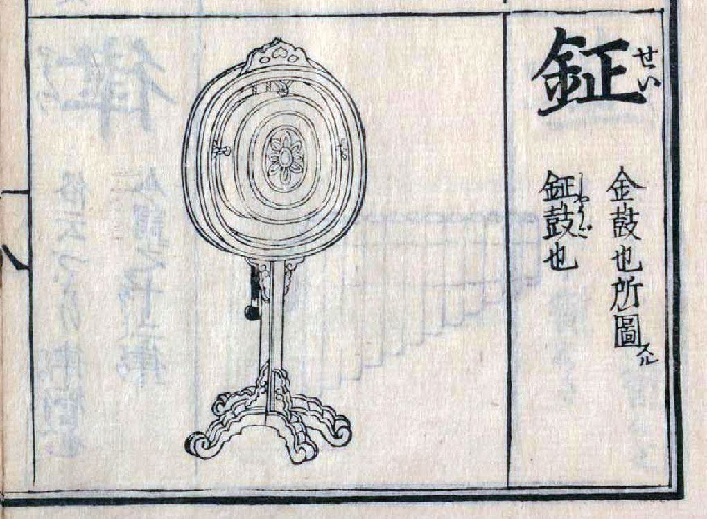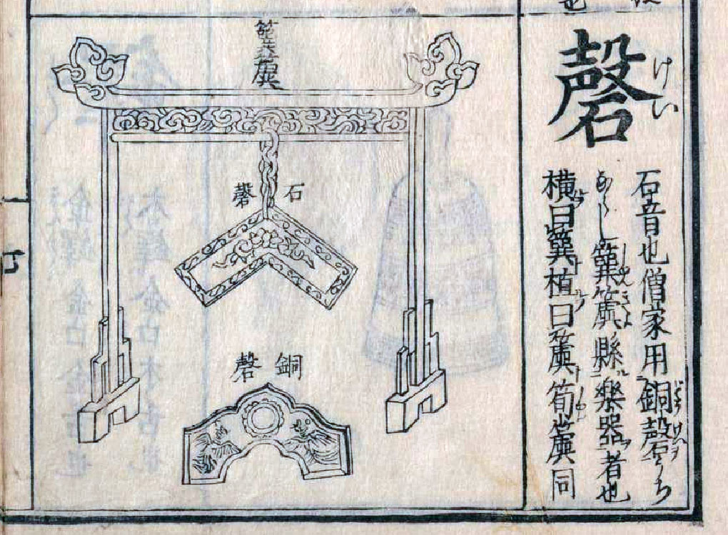 石音也。僧家銅磬を用いてうちならし簨簴、楽器を係る者也。横るを簨と曰う。植るを簴と曰う。筍簴、同じ。