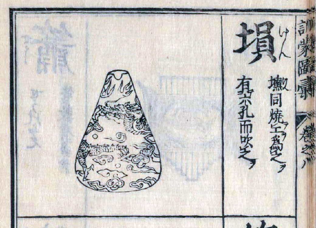 壎、同じ。工を焼て之を為す。六孔有りて而之を吹く。