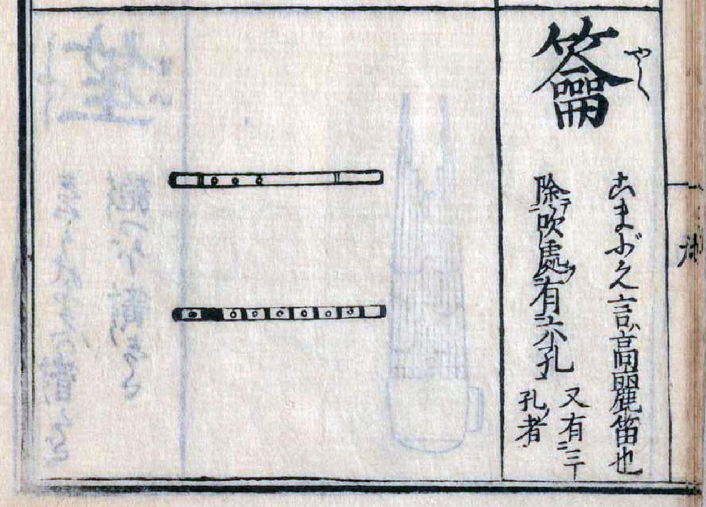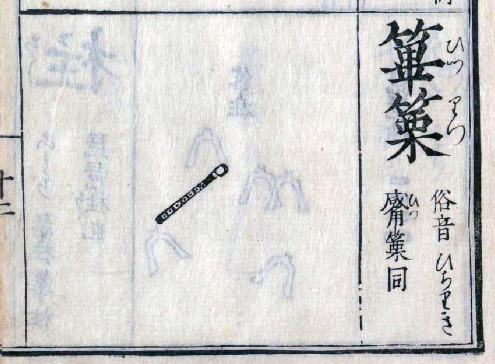 ふえ。篴、同じ。横笛也、よこぶえ、尺八、竪笛也。