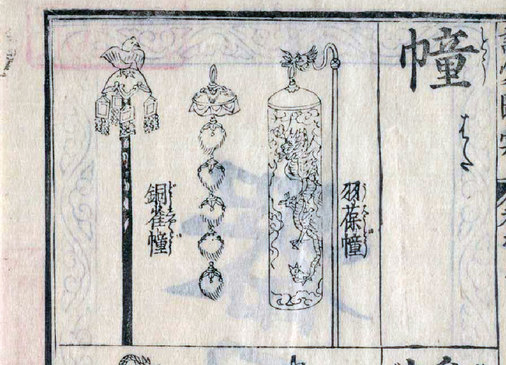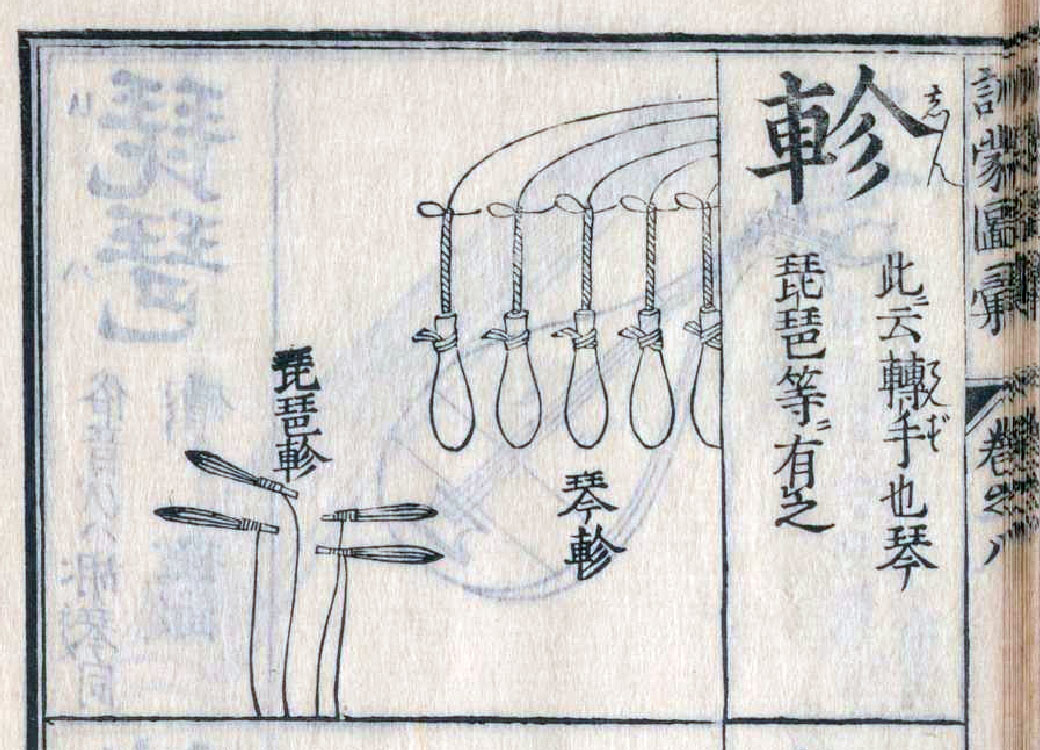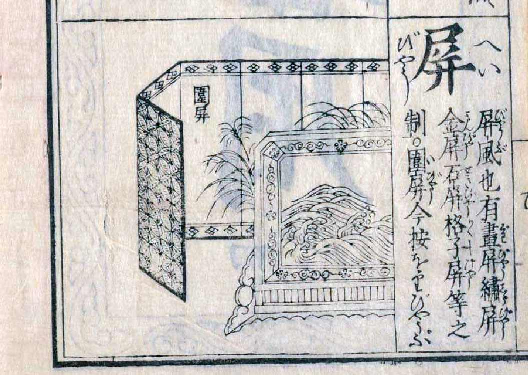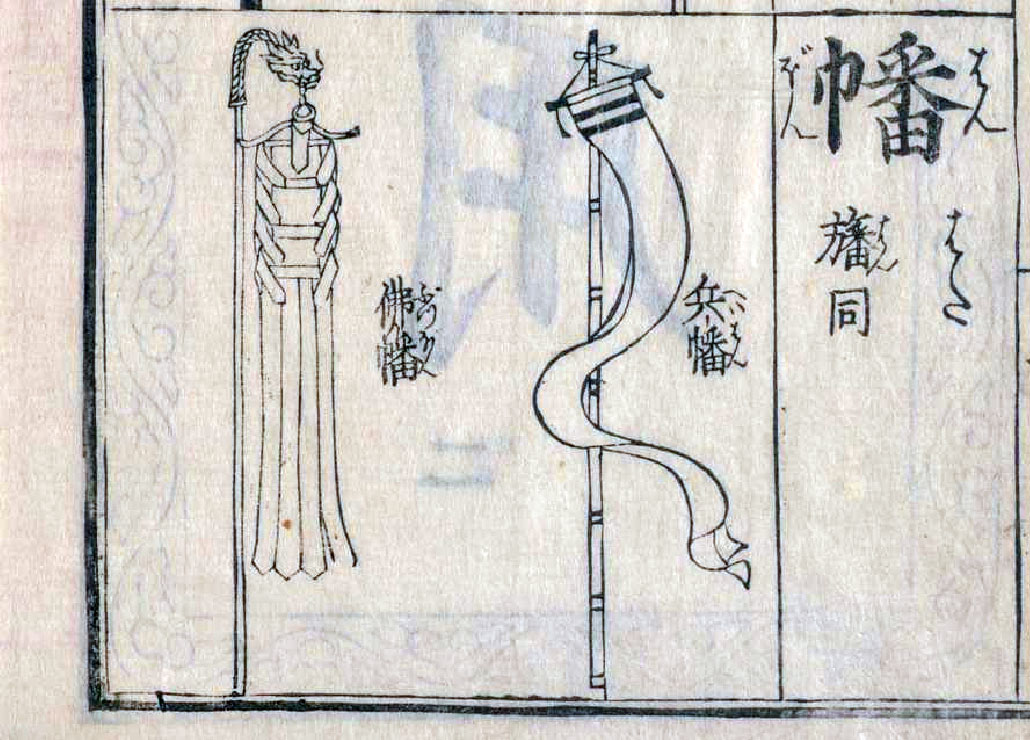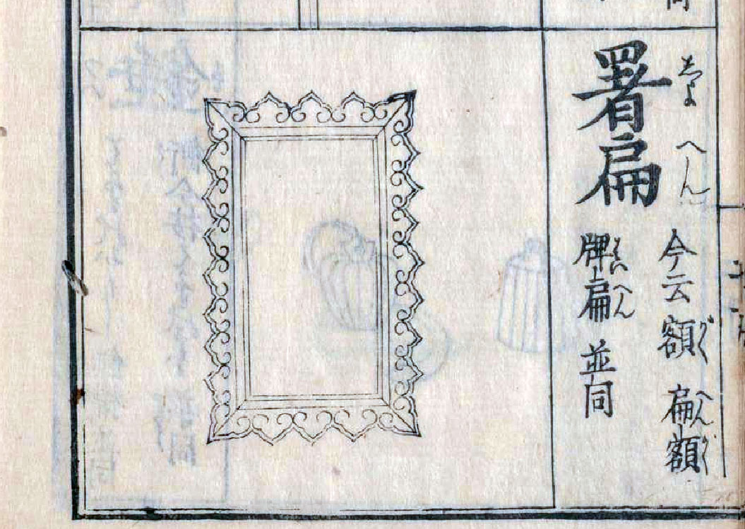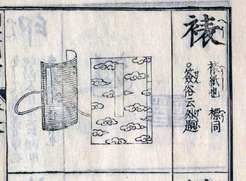 え図、同じ。米を設るを絵と曰う。掛軸、今按ずるに、かけもの。褾褫は者裱褙也。装裱、同じ。驚燕、今云う、風帯。