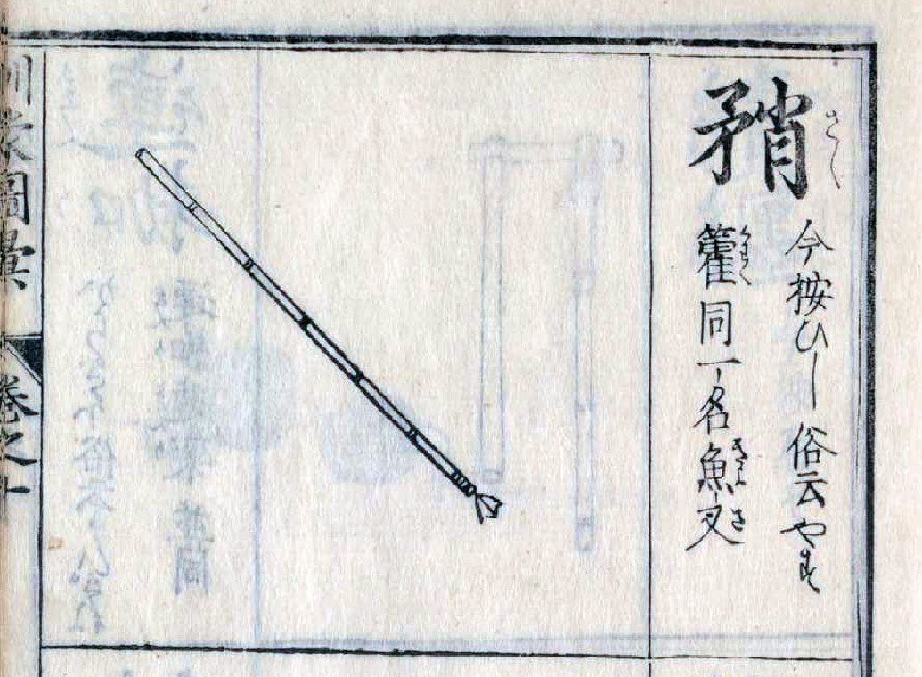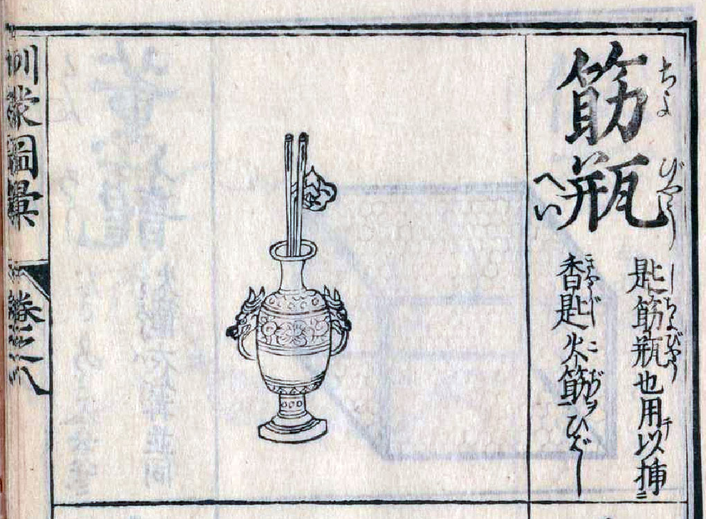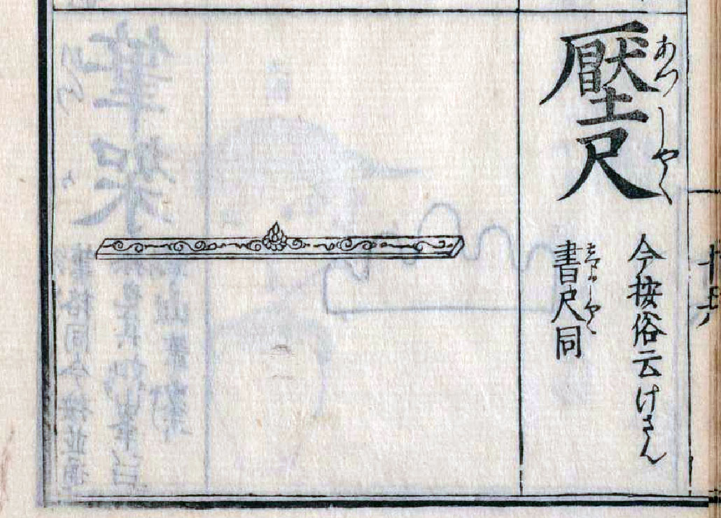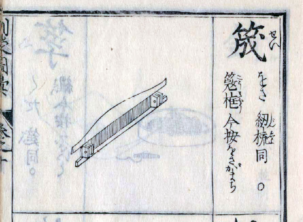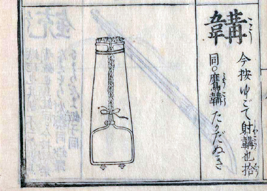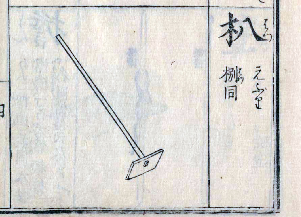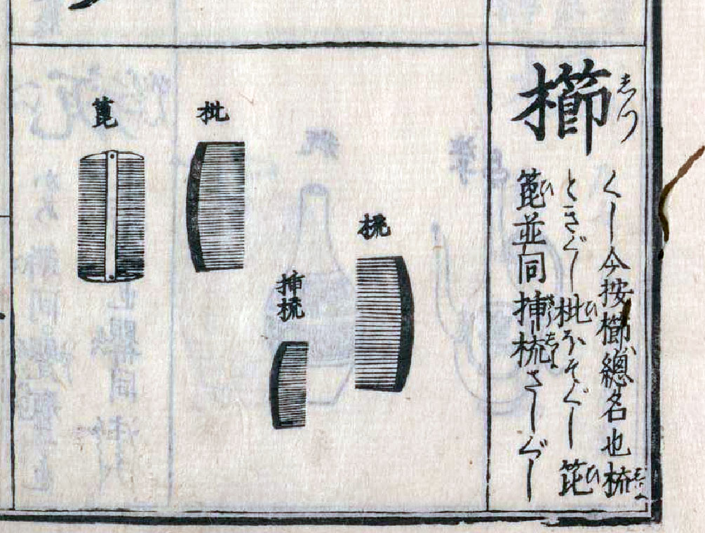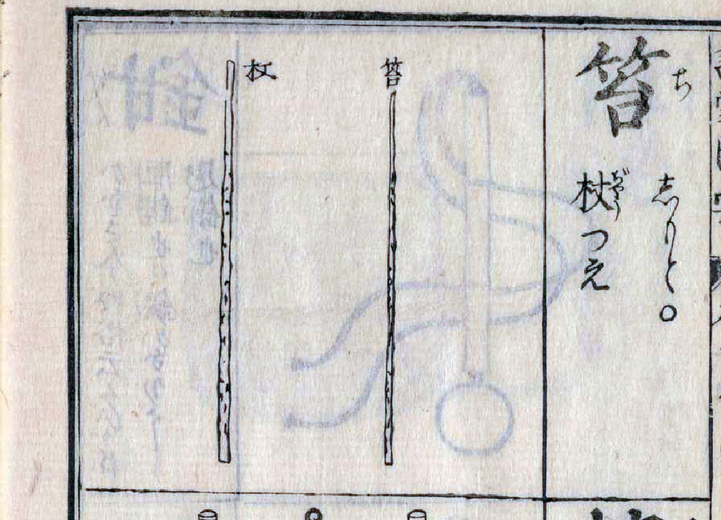 ふで、笔、同じ。筆。管。ふでのつか。筆帽。今按ずるに、ふでのさや、筆錔同じ。筆筒、今按ずるに、ふでたて。