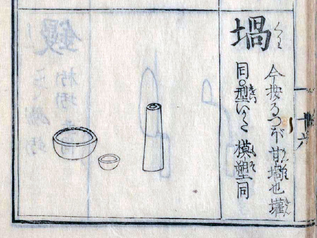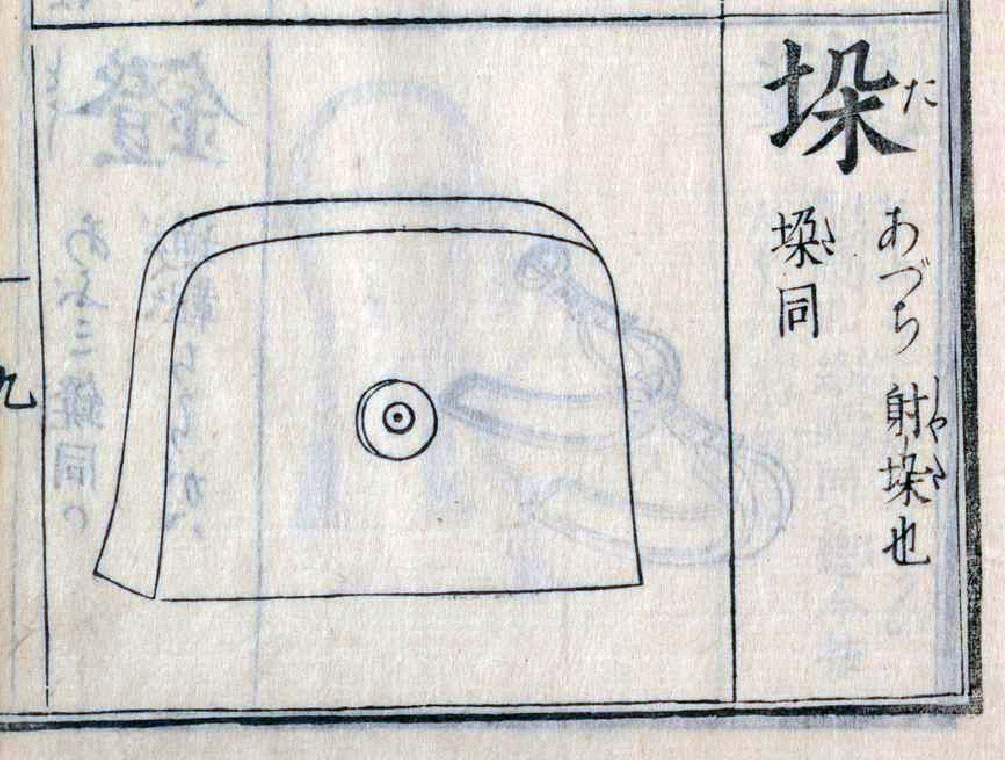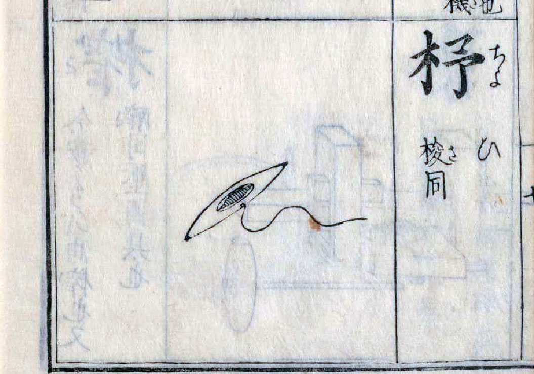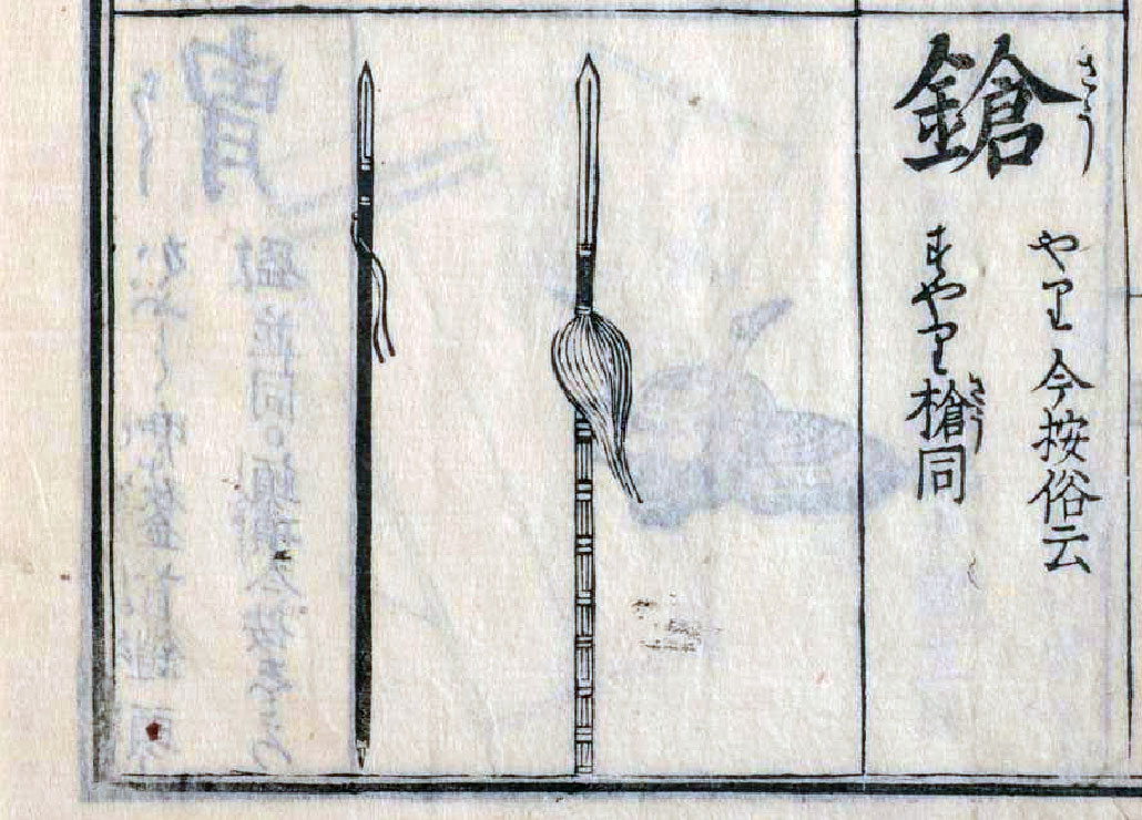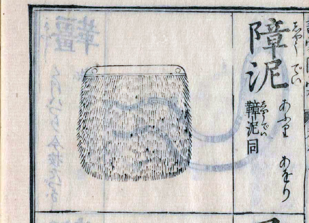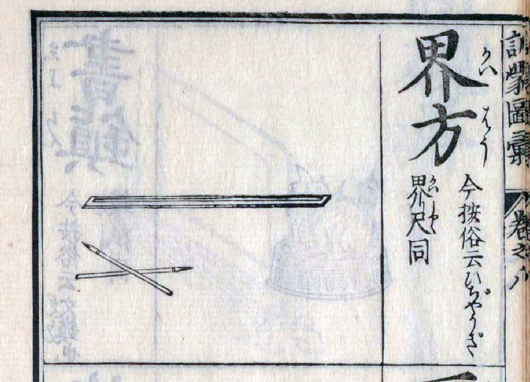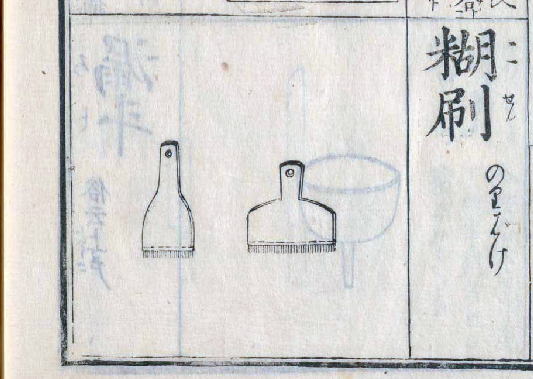ふで、笔、同じ。筆。管。ふでのつか。筆帽。今按ずるに、ふでのさや、筆錔同じ。筆筒、今按ずるに、ふでたて。