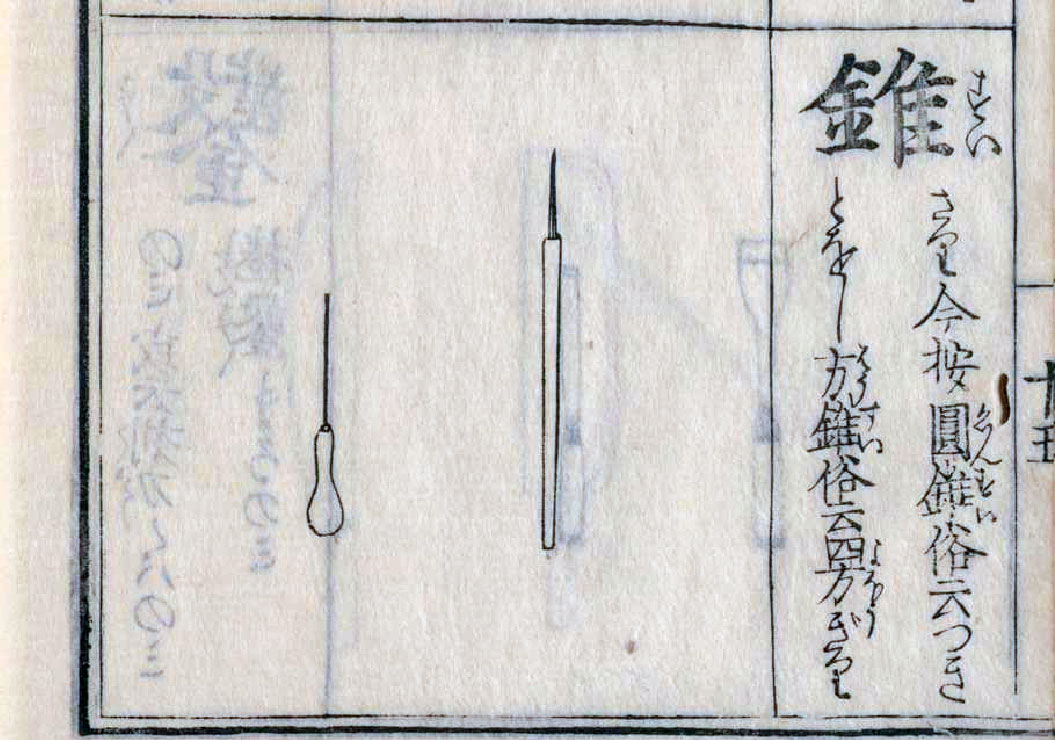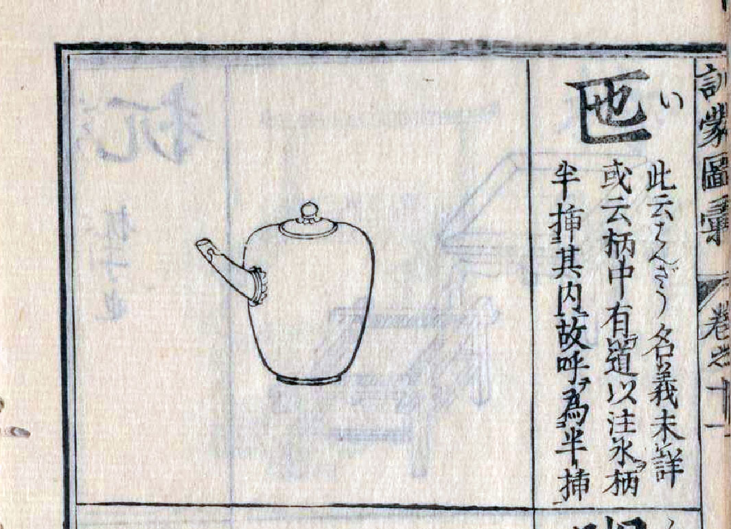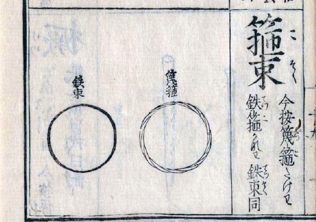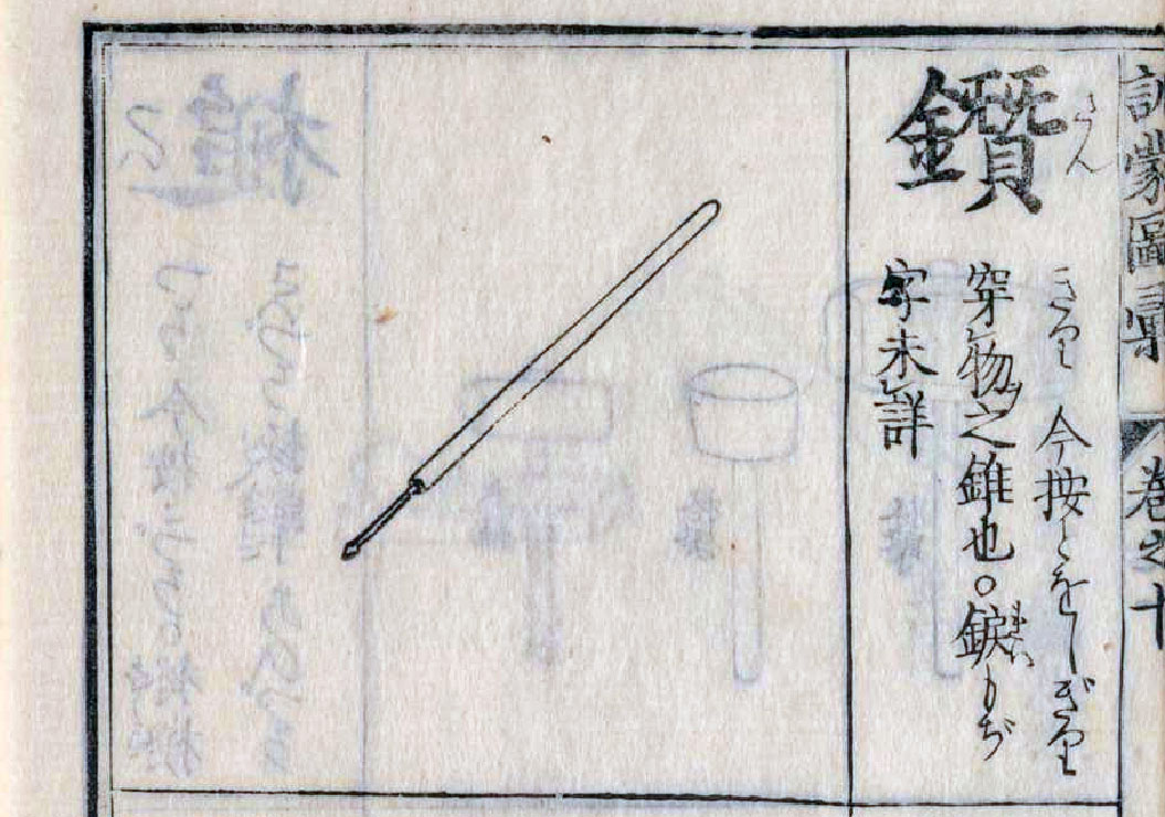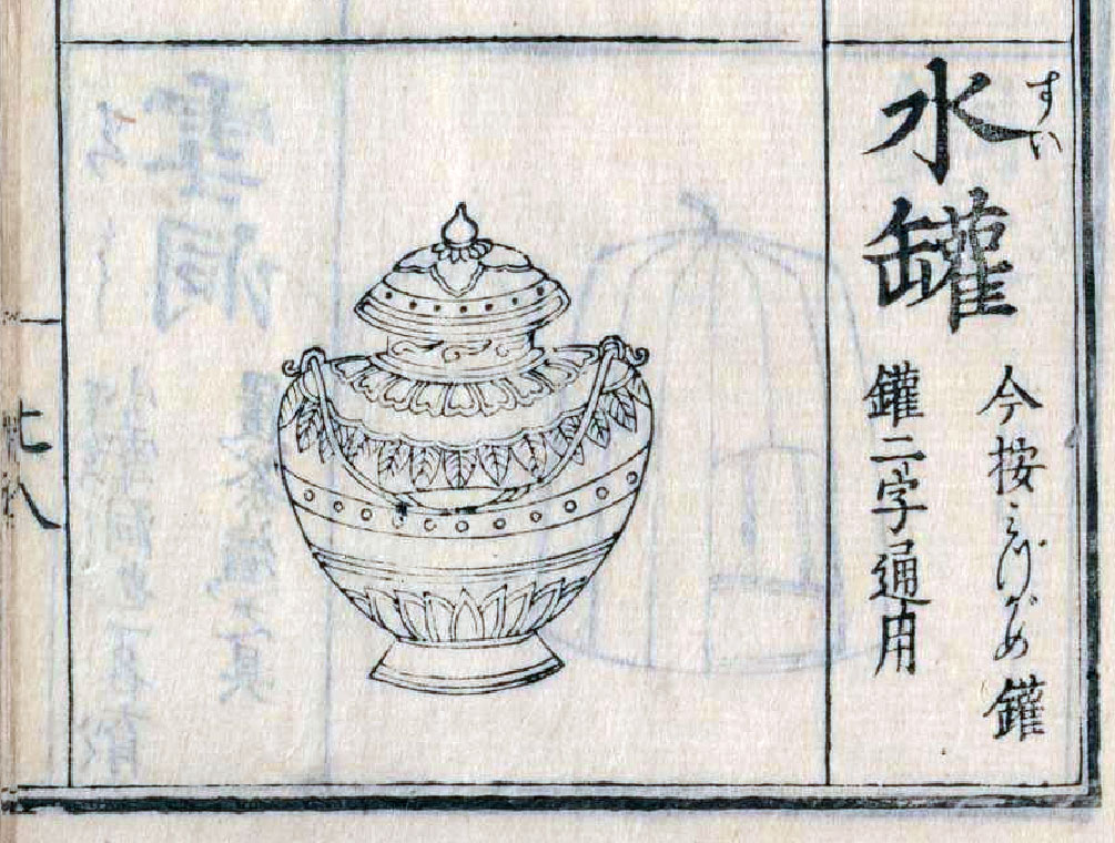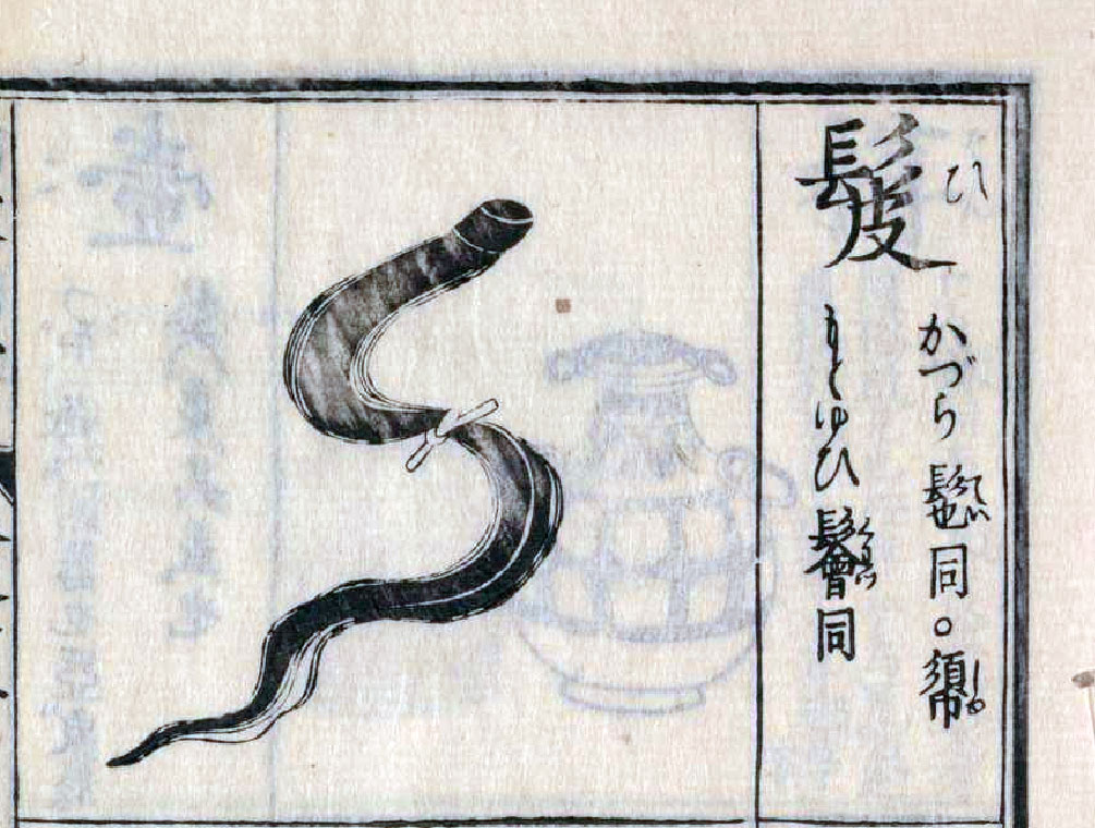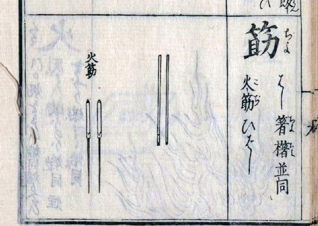 ふで、笔、同じ。筆。管。ふでのつか。筆帽。今按ずるに、ふでのさや、筆錔同じ。筆筒、今按ずるに、ふでたて。