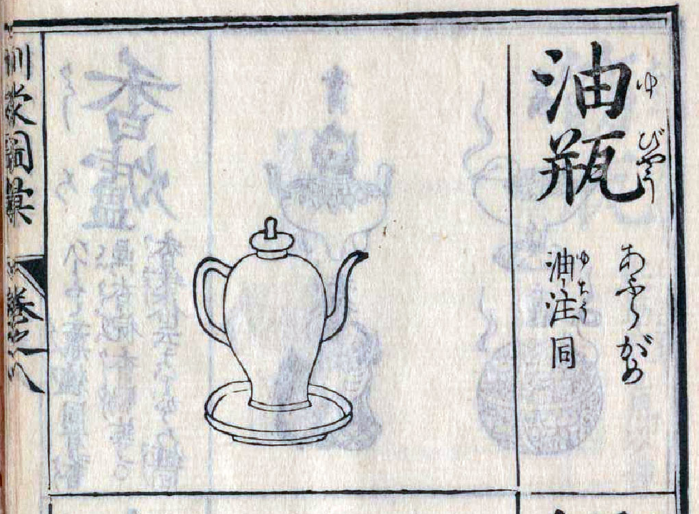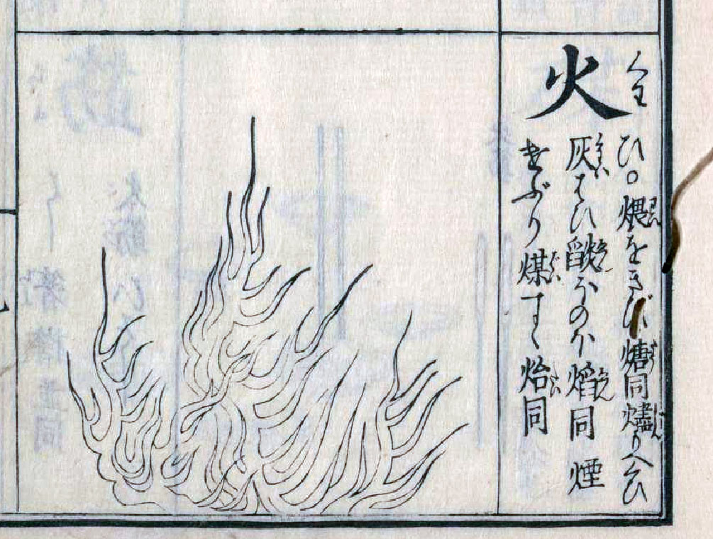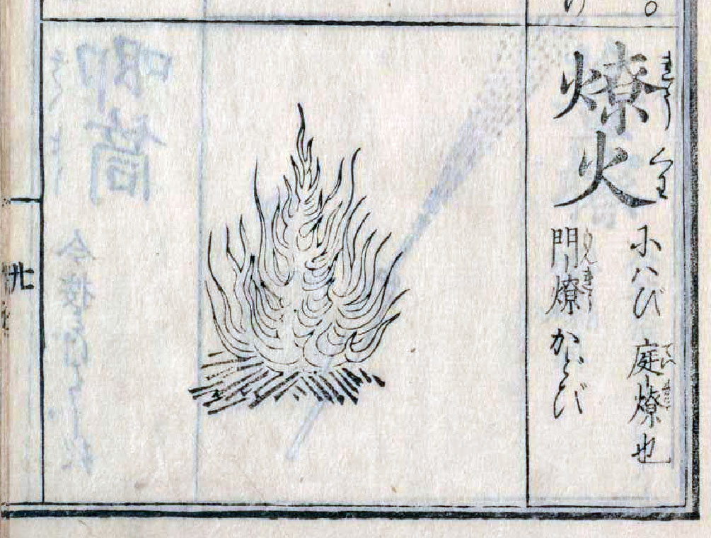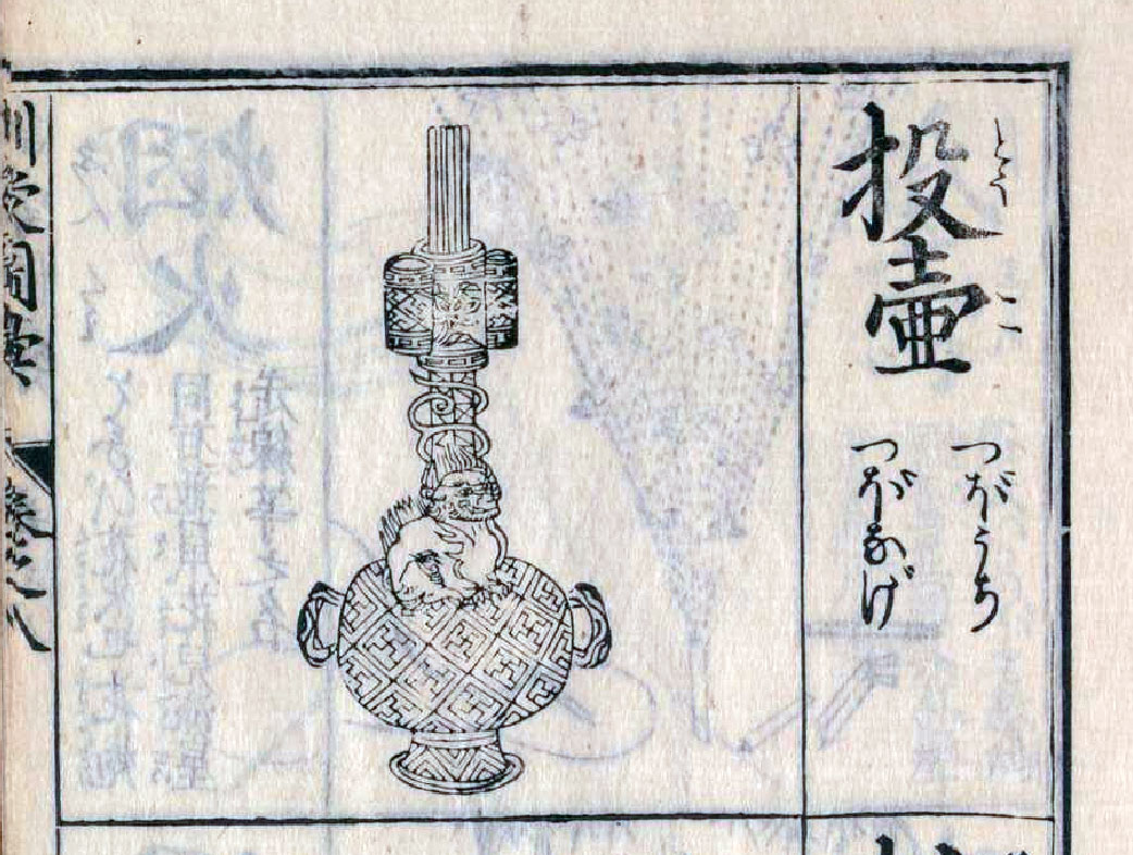 ともしび。あぶらひ。灯、同じ。灯盃、あぶらつき、灯釭、同じ。灯心、とうしみ。灯炷、同じ。灯花、俗云、ちょうじがしら。