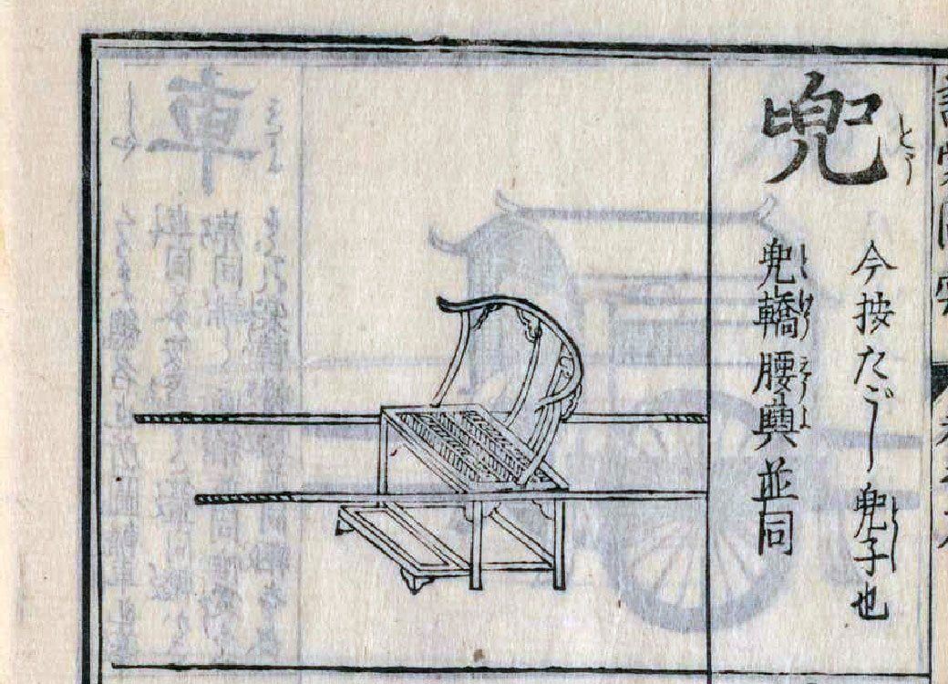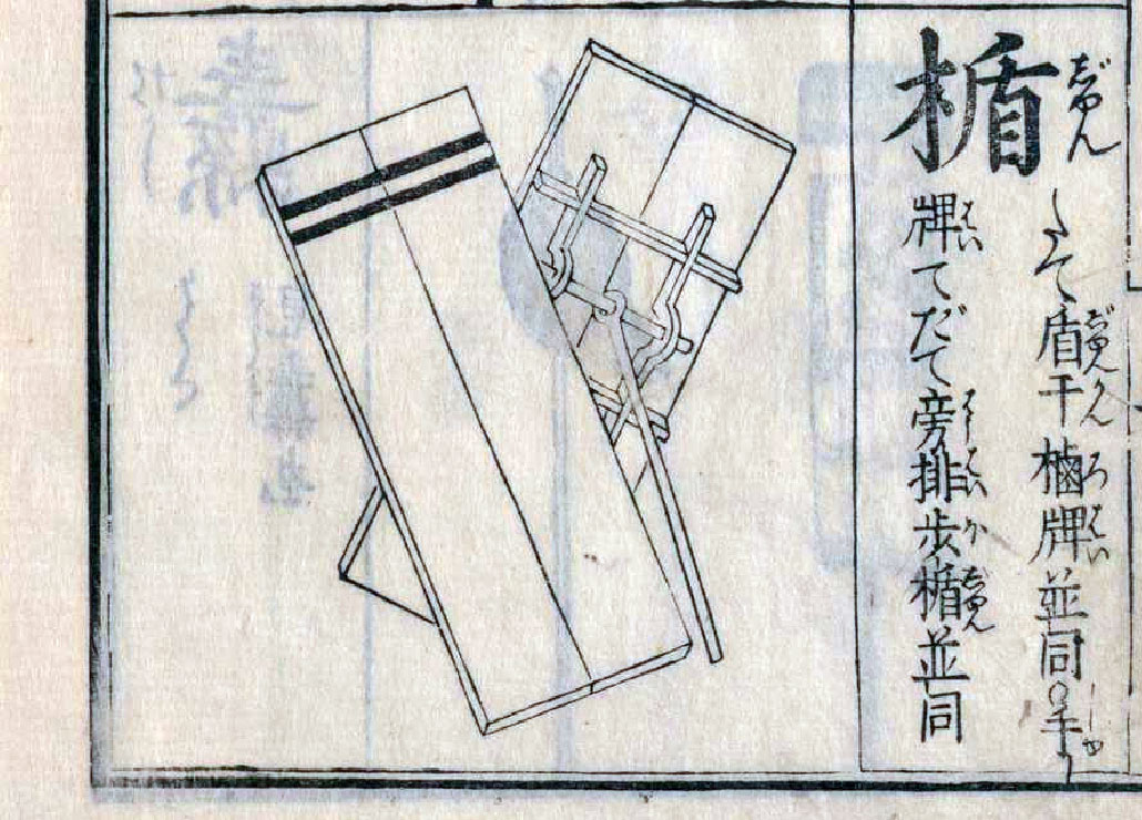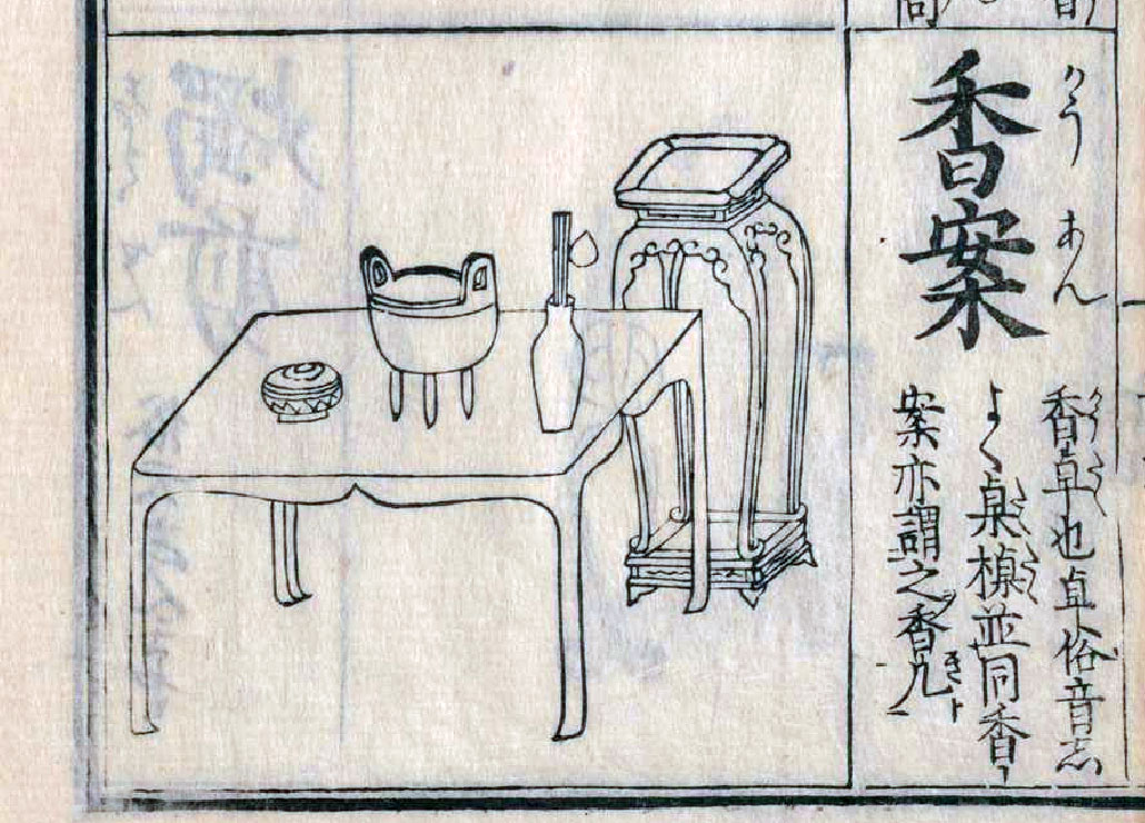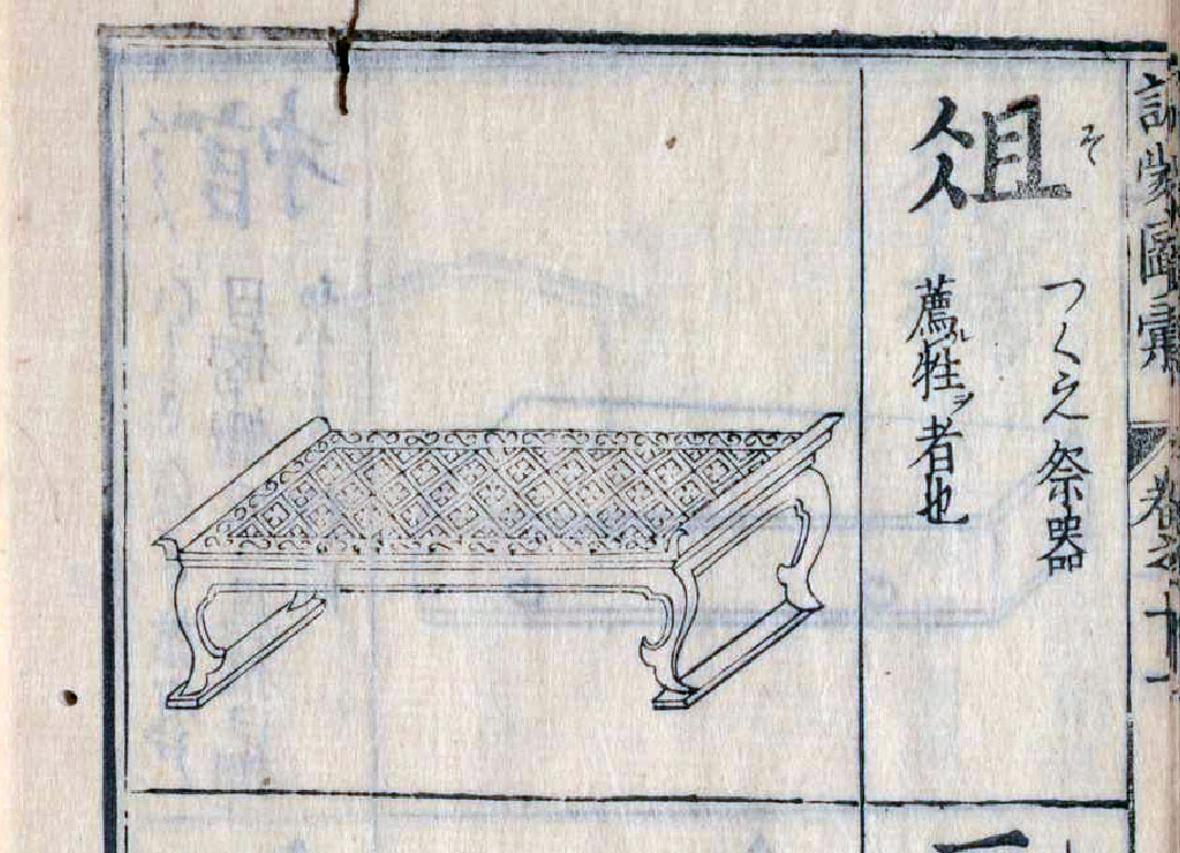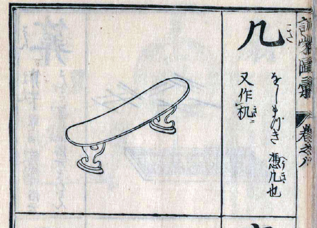 つくえ。卓、桌、並びに同じ。几も亦通用す。其制一ならず図する所書案也。ふづくえ。
