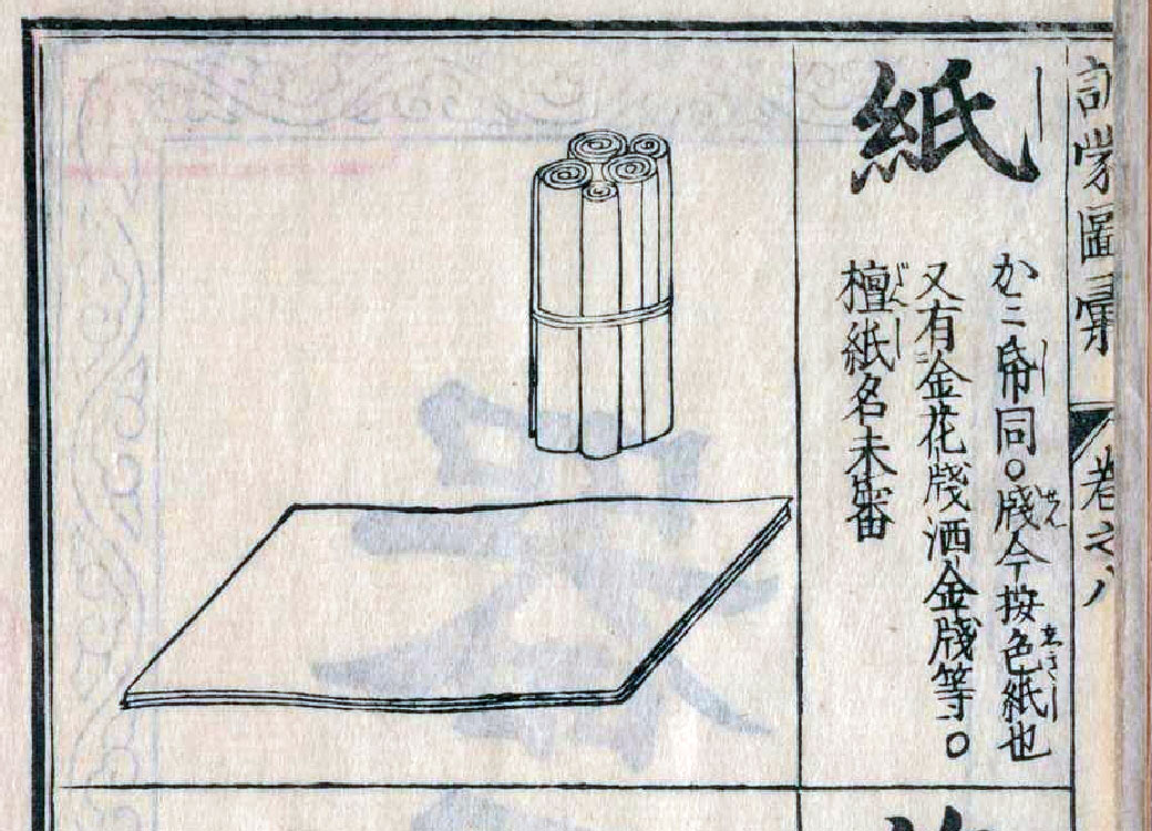 かみ。帋、同じ。牋、今按ずるに、色紙也。又金花牋酒金牋等有り。檀紙名未だ審かならず。