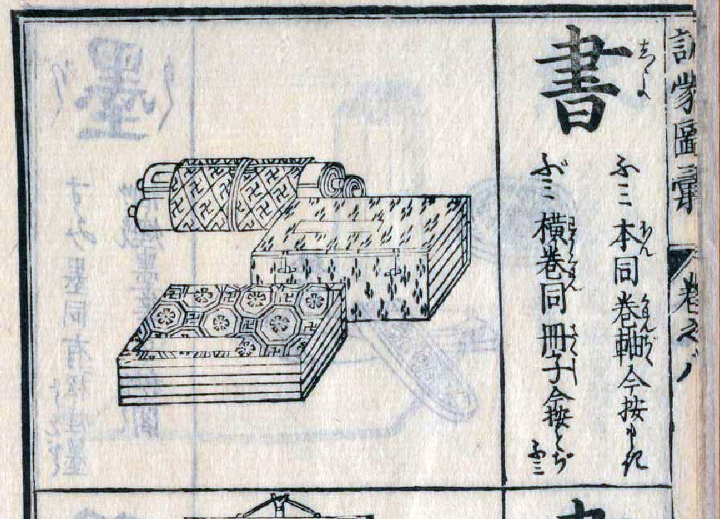 ふみ、本、同じ。巻軸、今按ずるに、まきぶみ。横巻同じ。冊子、今按ずるに、とじふみ。