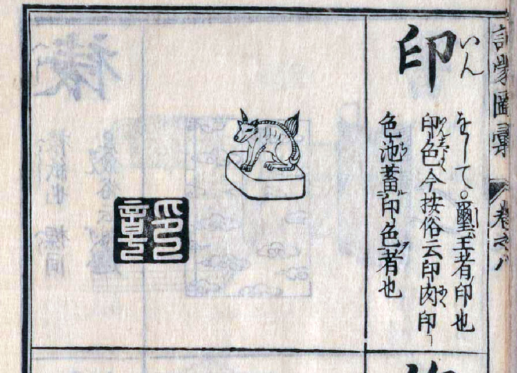 おして。璽は玉者の印也。印色、今按ずるに俗に云う、印肉。印色池印色を蓄る者也。