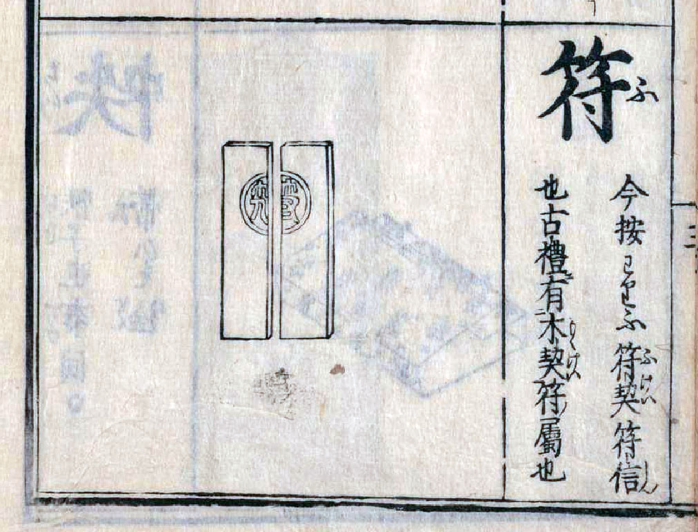 今按ずるに、わりふ。符契、符信也。古礼に木契有り、符の属也。