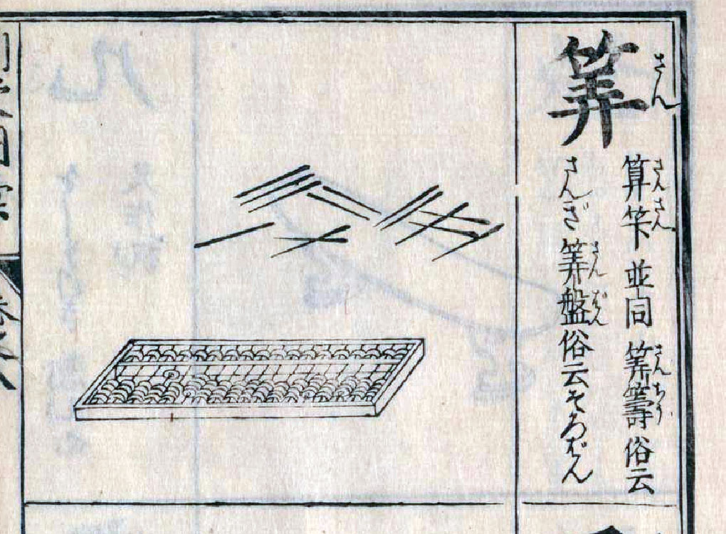 算、笇、並びに同じ。筭籌、俗に云う、さんぎ。筭盤、俗に云う、そろばん。