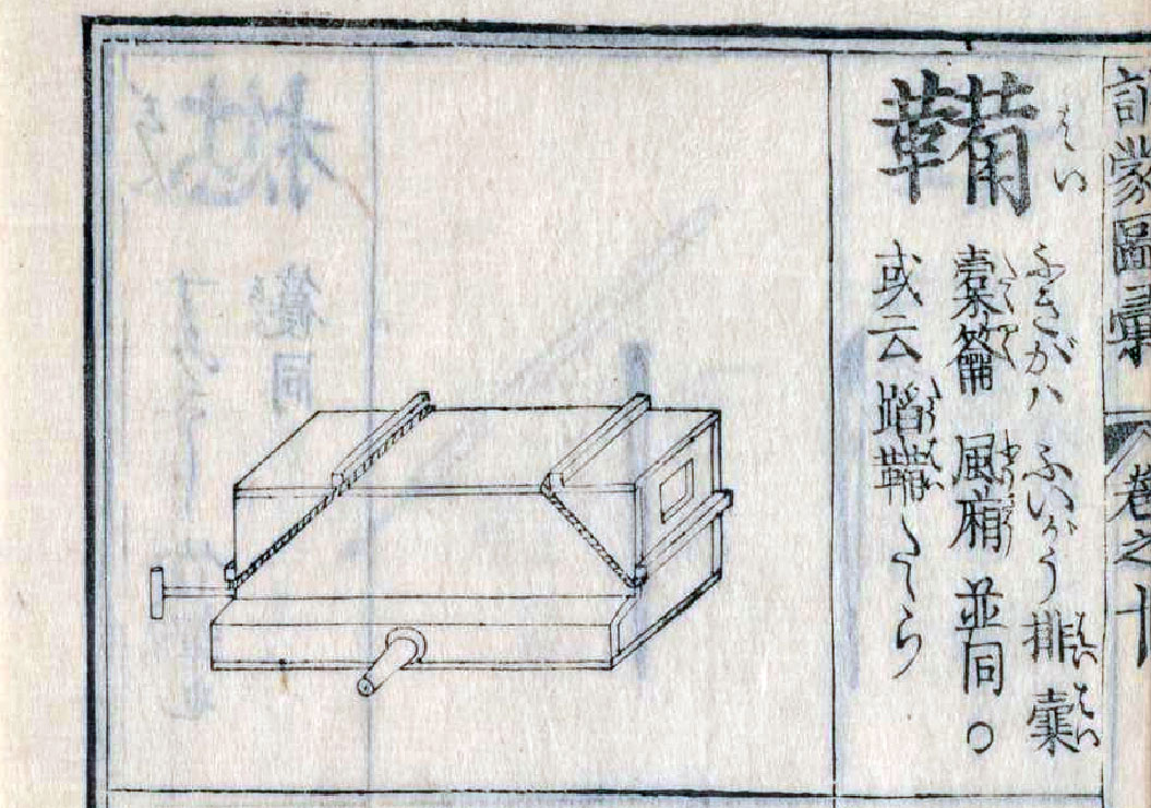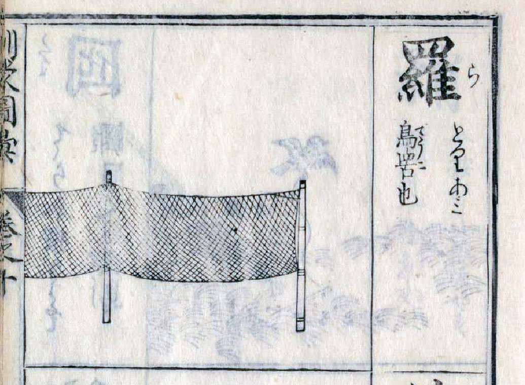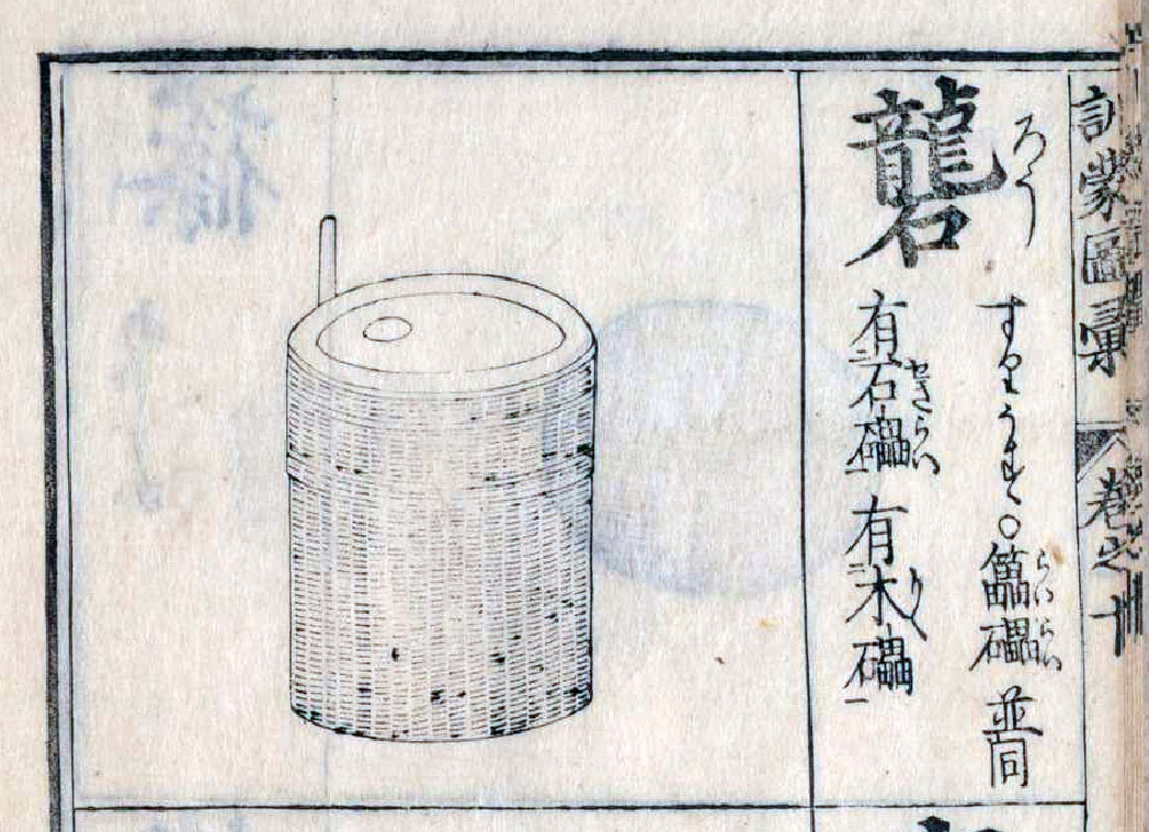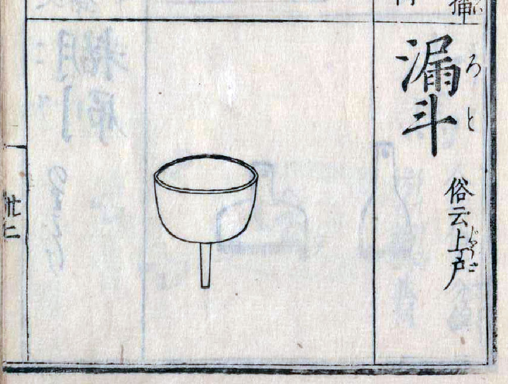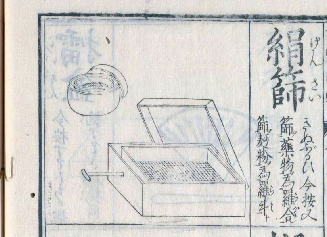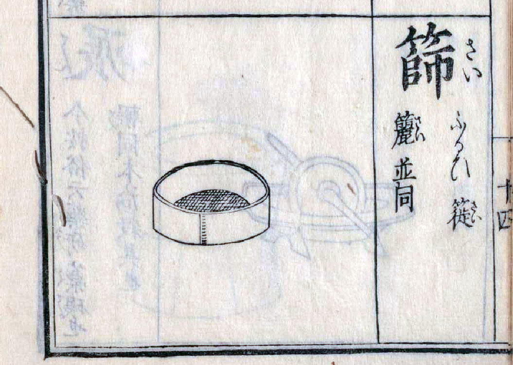 きぬぶるい。今按ずるに、又薬物を篩を羅合と為す。麪粉を篩を羅斗と為す。