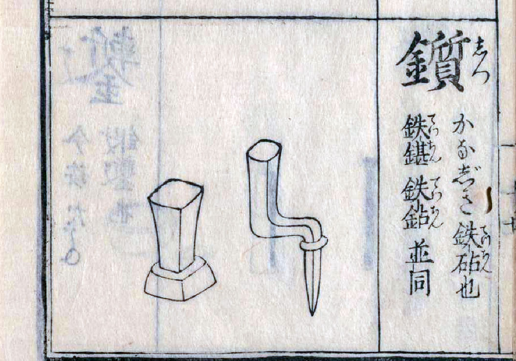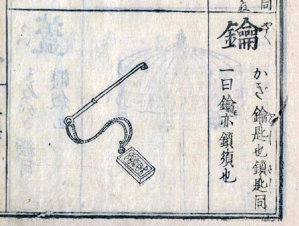 かね、おおがね。俗に云う、つきがね。鐘木。俗に云う、しゅもく、言ば鐘木也。