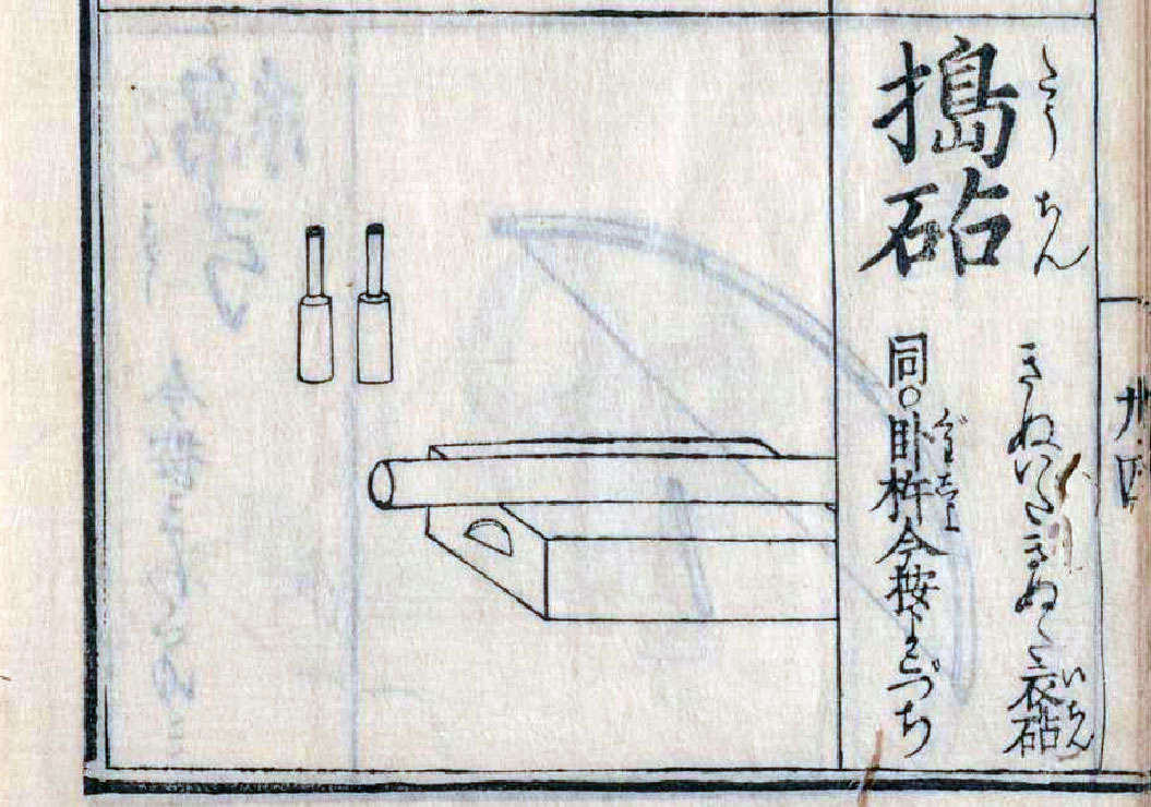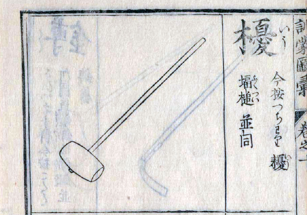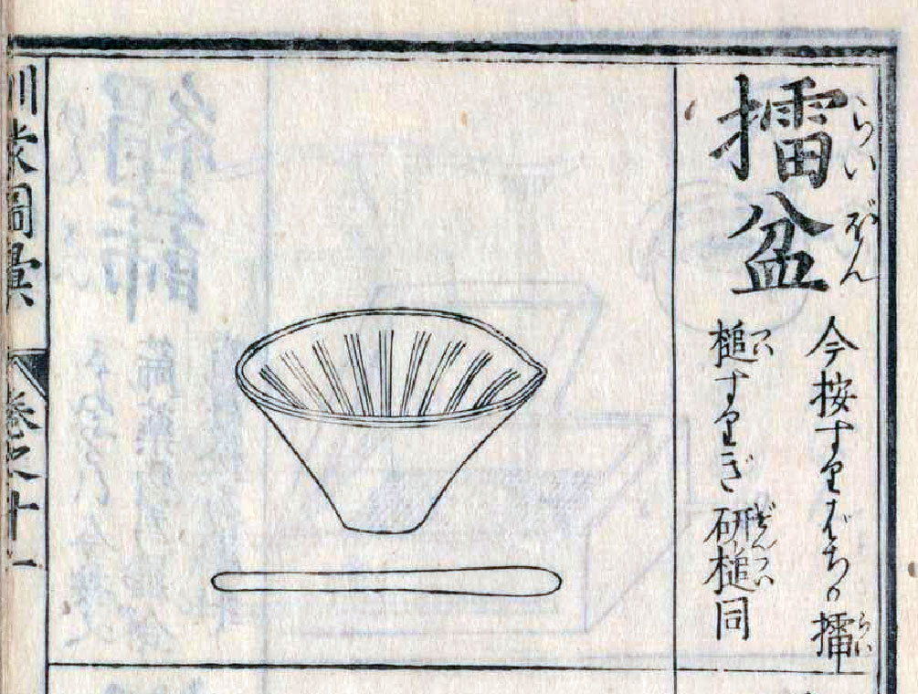 今按ずるに、すりばち。擂槌、すりぎ、研槌、同じ。