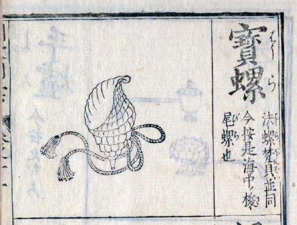 法螺、梵貝、並びに同じ。今按ずるに、是海中の梭尾螺也。