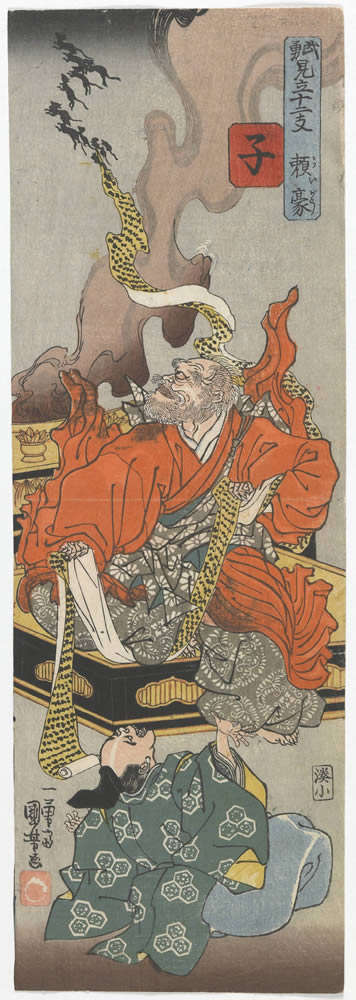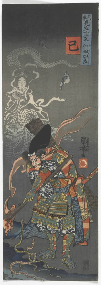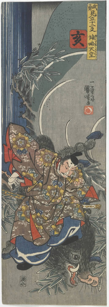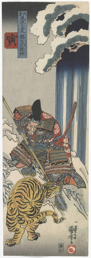 歌川国芳 (寛政9年・1798年 - 文久元年・1861年)の『武勇見立十二支 』です。 - 武者絵と十二支の動物を組み合わせた12図の大判錦絵で、原画はスミソニアン博物館によります。