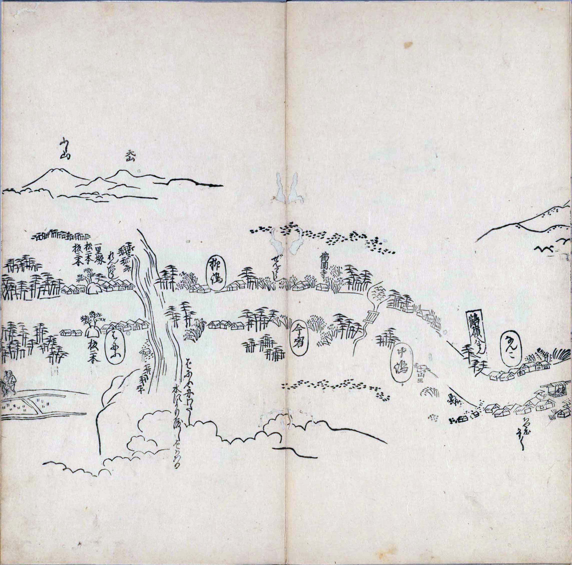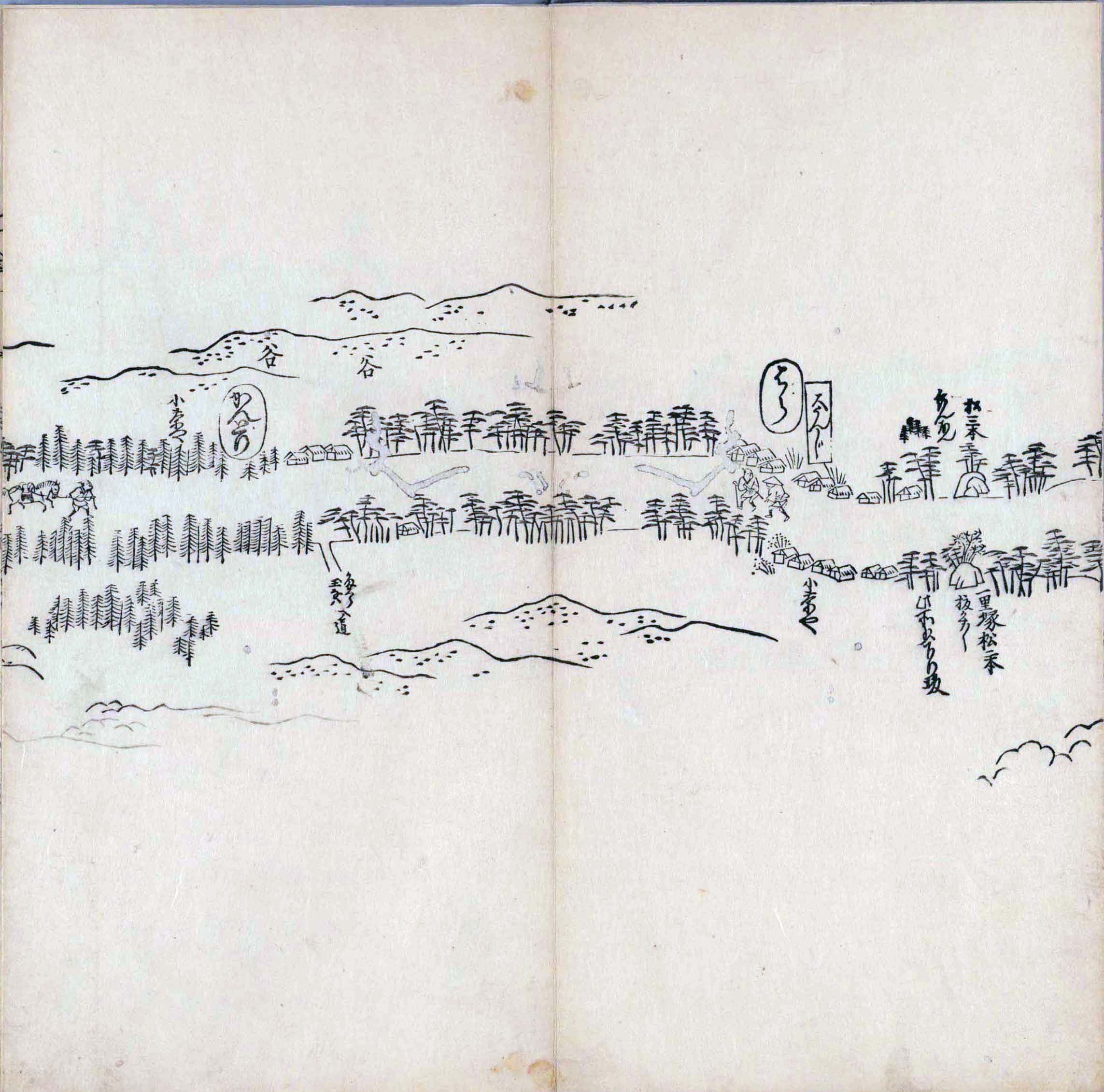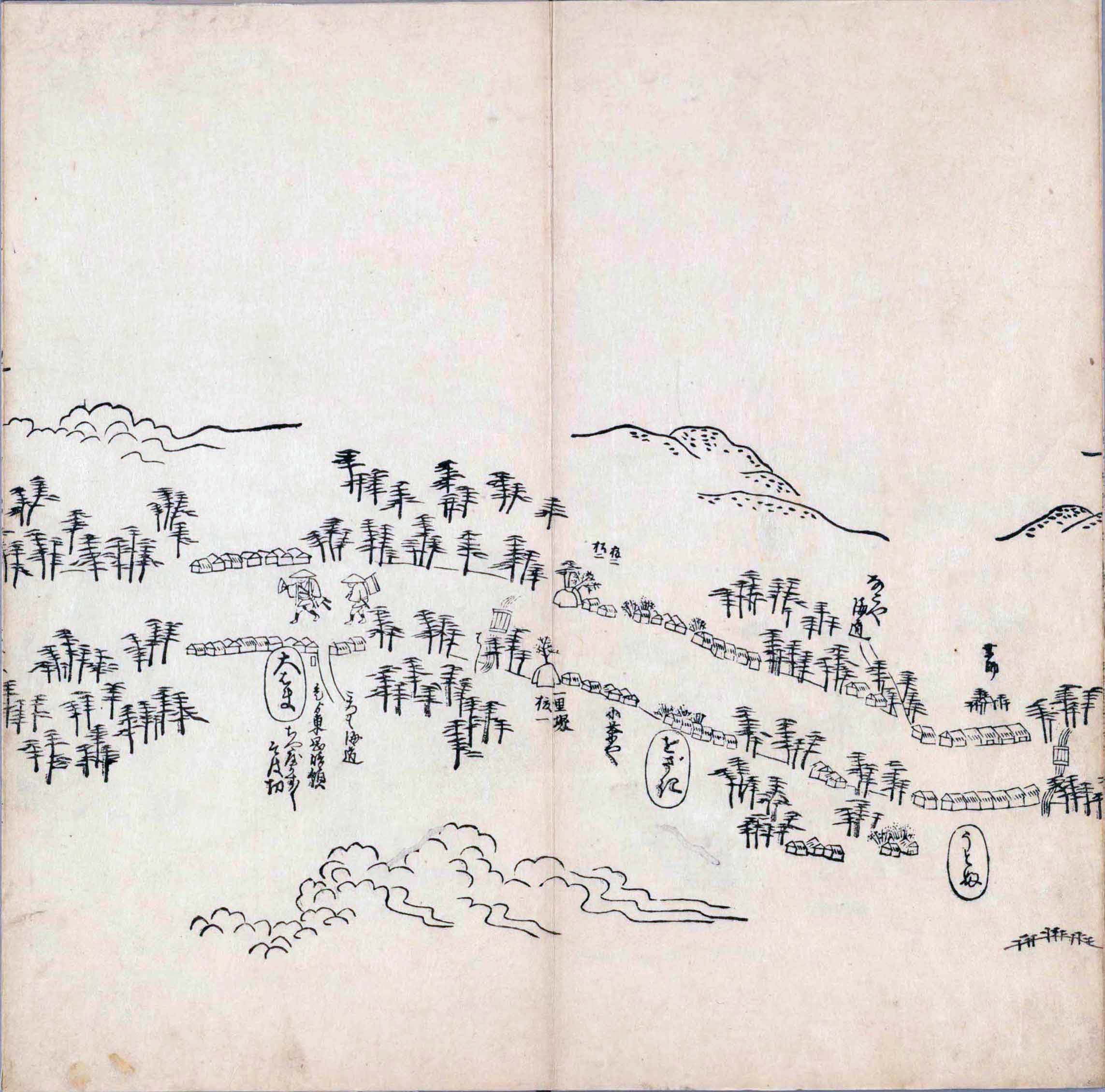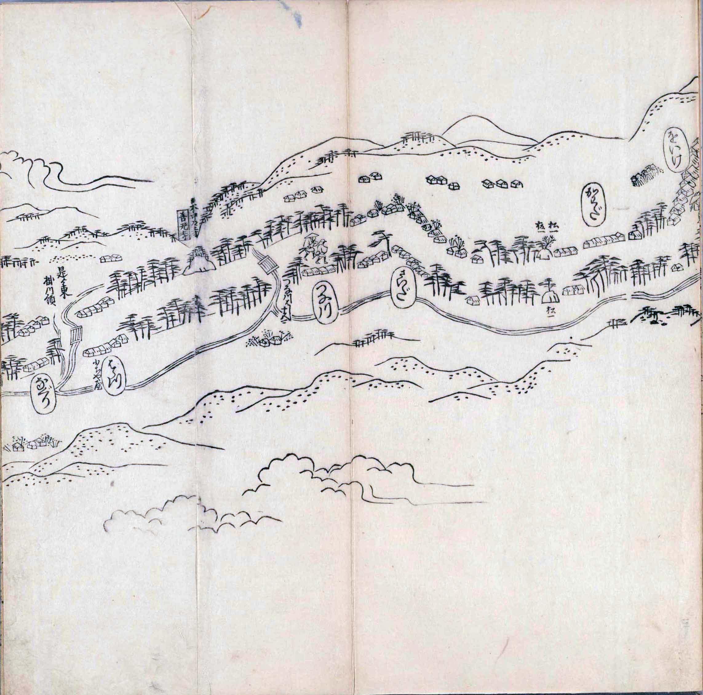 遠近道印 (寛永5年(1628年) - 没年不詳)が作成した分間図を基に、絵師・菱川師宣 (菱川吉兵衛 )(元和4年〈1618年〉 - 元禄7年6月4日〈1694年7月25日〉) が絵画的要素を加味した街道風景を描いて完成させたもの。元禄3年(1690年)の刊行。 - 江戸・日本橋から京・二条城までを5帖の折本に描いている。