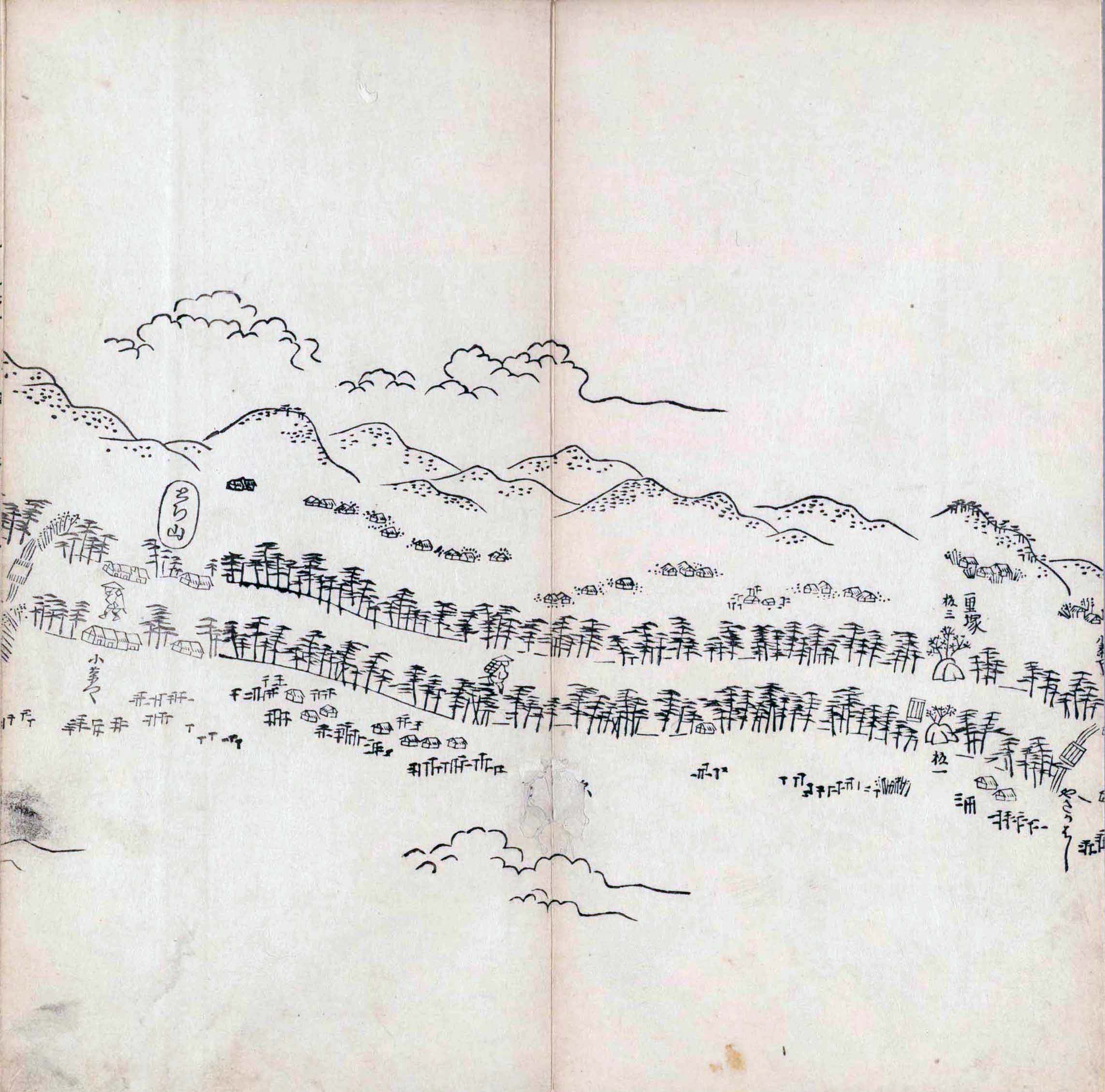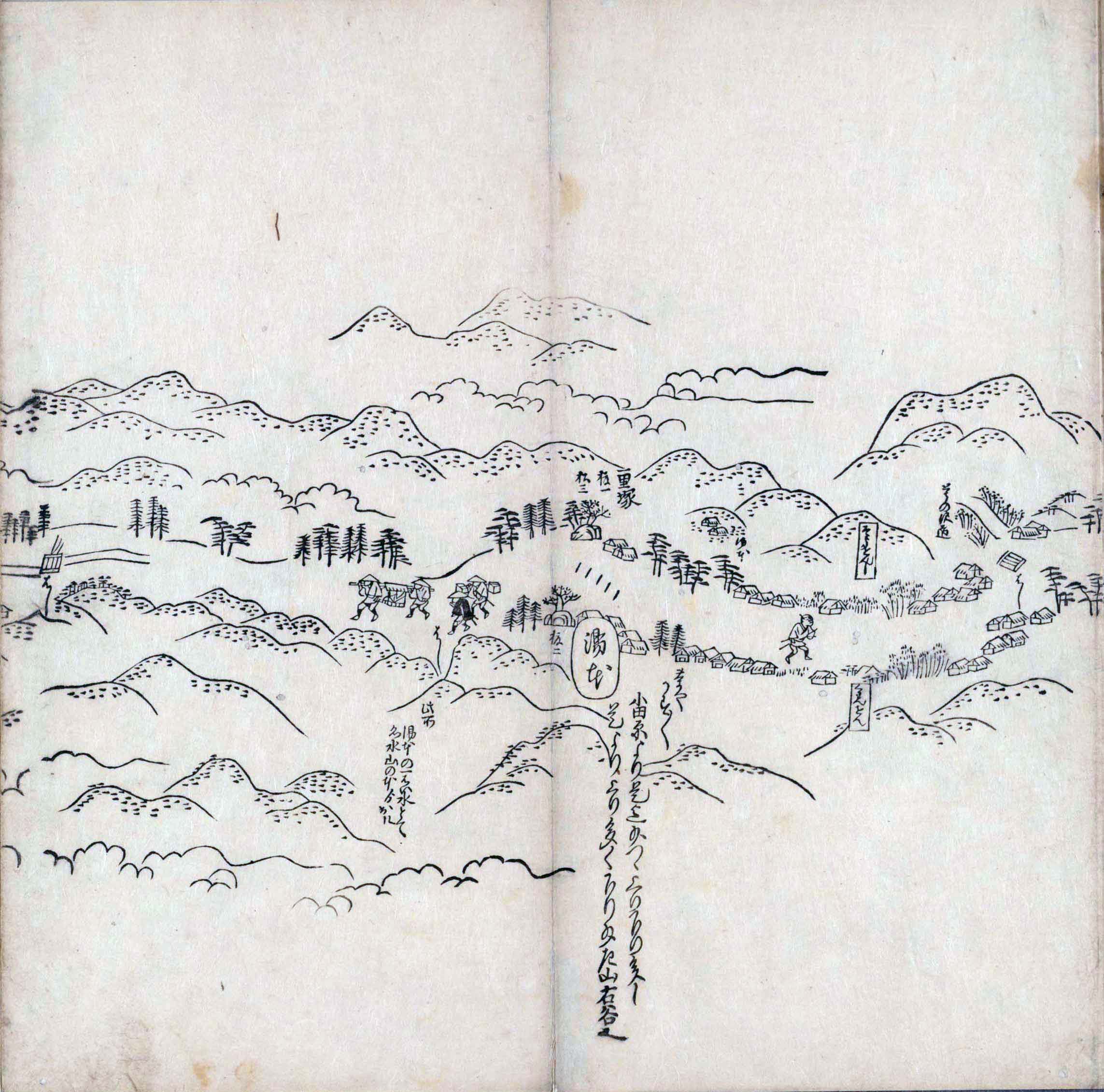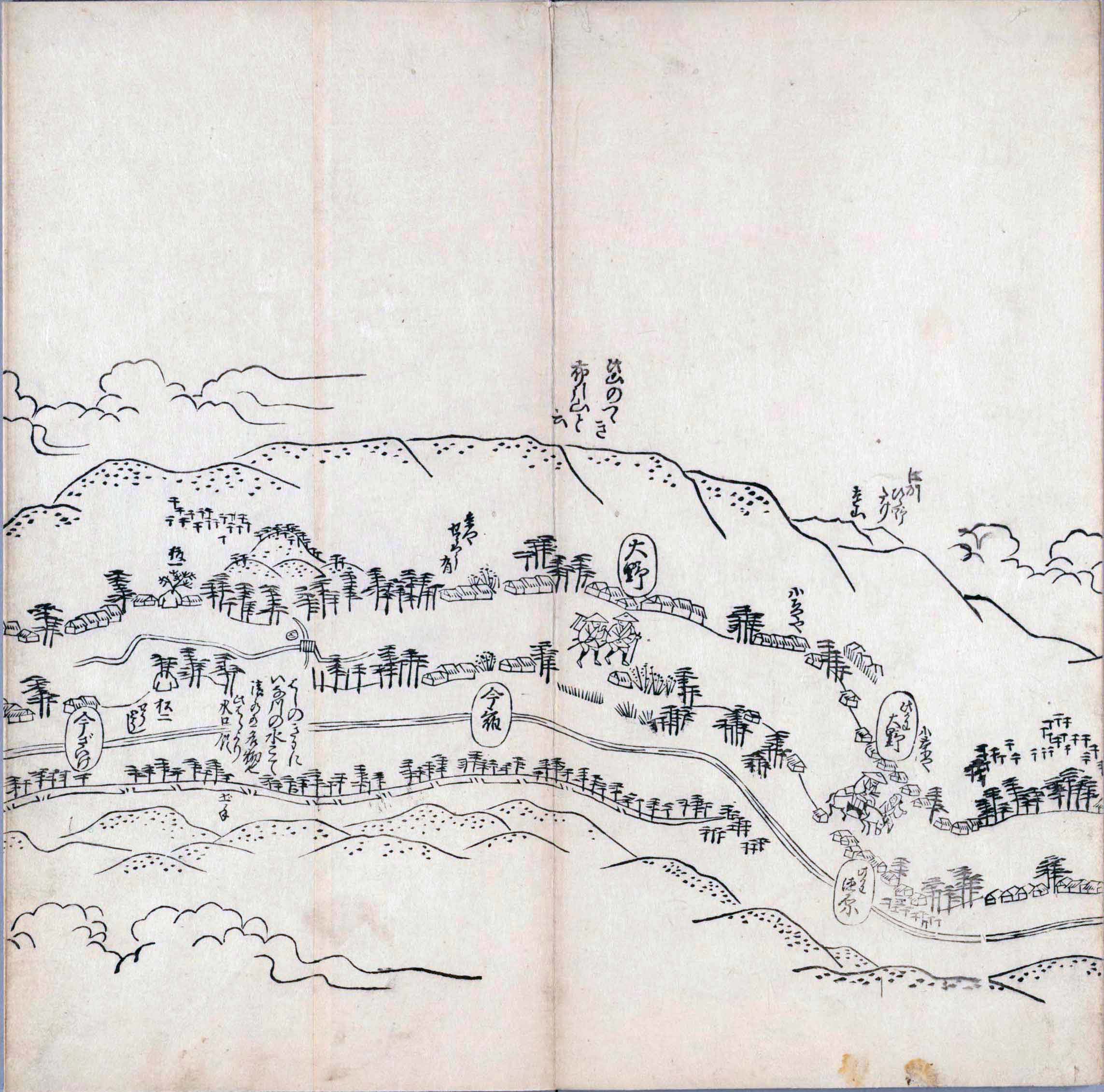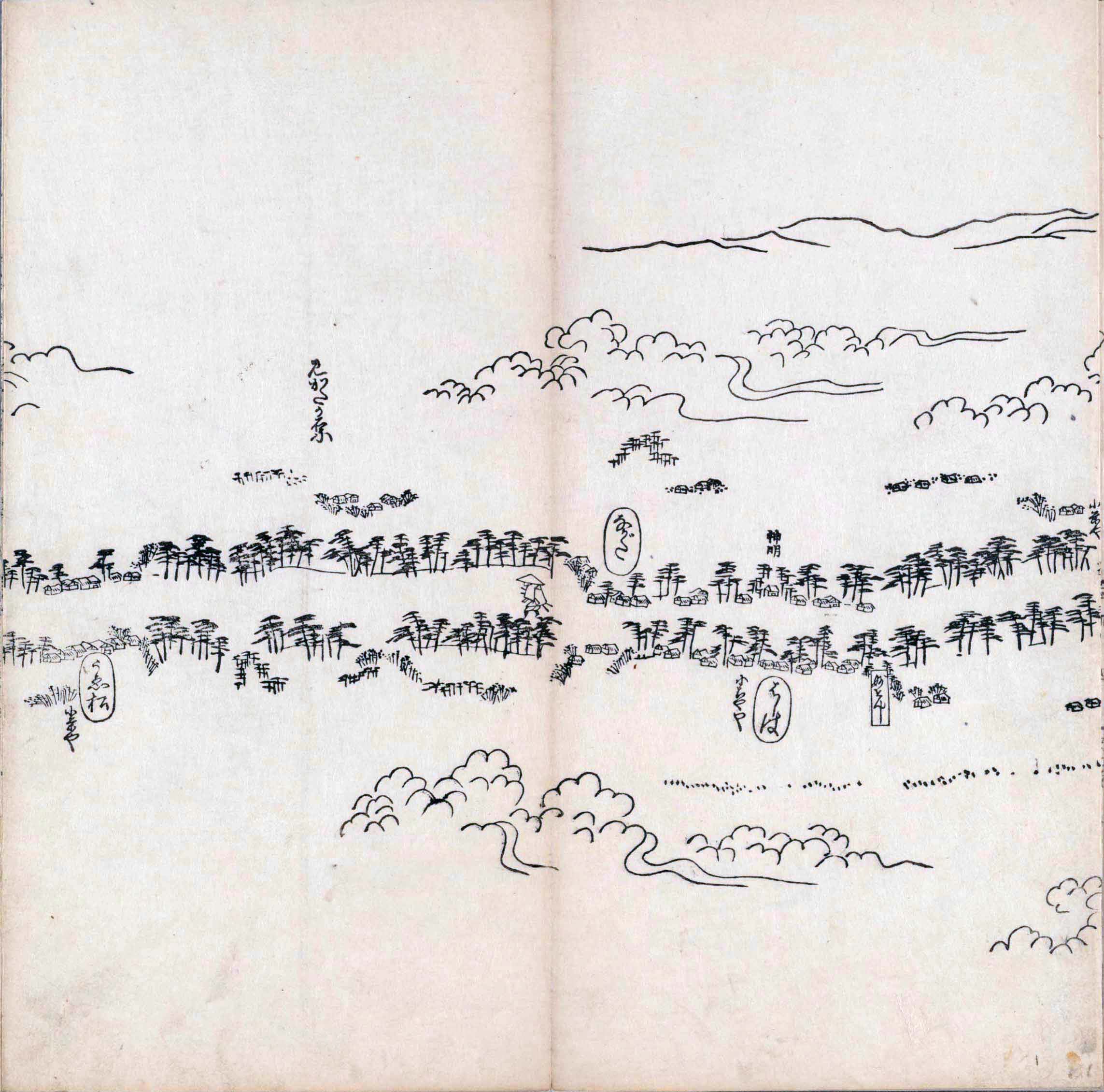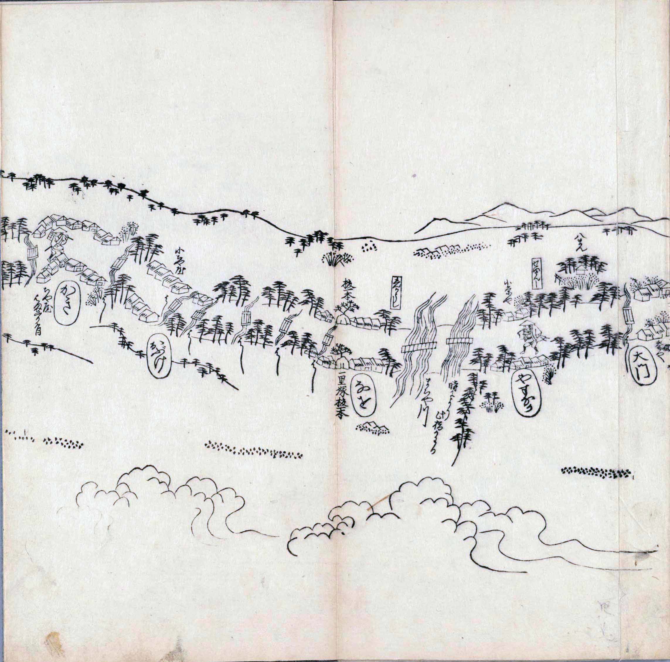 遠近道印 (寛永5年(1628年) - 没年不詳)が作成した分間図を基に、絵師・菱川師宣 (菱川吉兵衛 )(元和4年〈1618年〉 - 元禄7年6月4日〈1694年7月25日〉) が絵画的要素を加味した街道風景を描いて完成させたもの。元禄3年(1690年)の刊行。 - 江戸・日本橋から京・二条城までを5帖の折本に描いている。