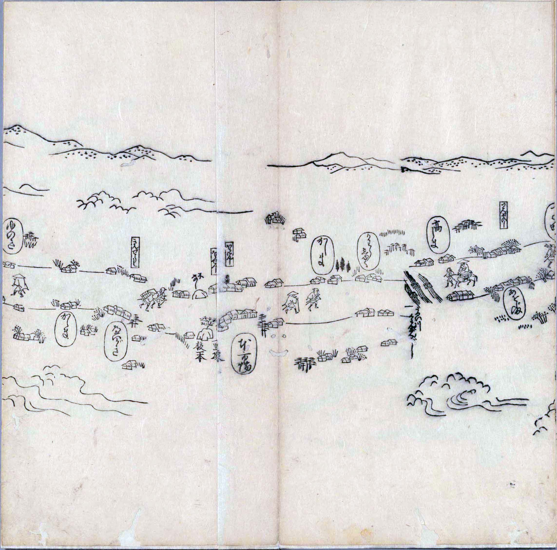 東海道分間図 、東海道綱目分間之図 、東海道分間之図 などとも呼ばれる。- ここでは、国立国会図書館が所蔵する版の一つを1ページにまとめた。
