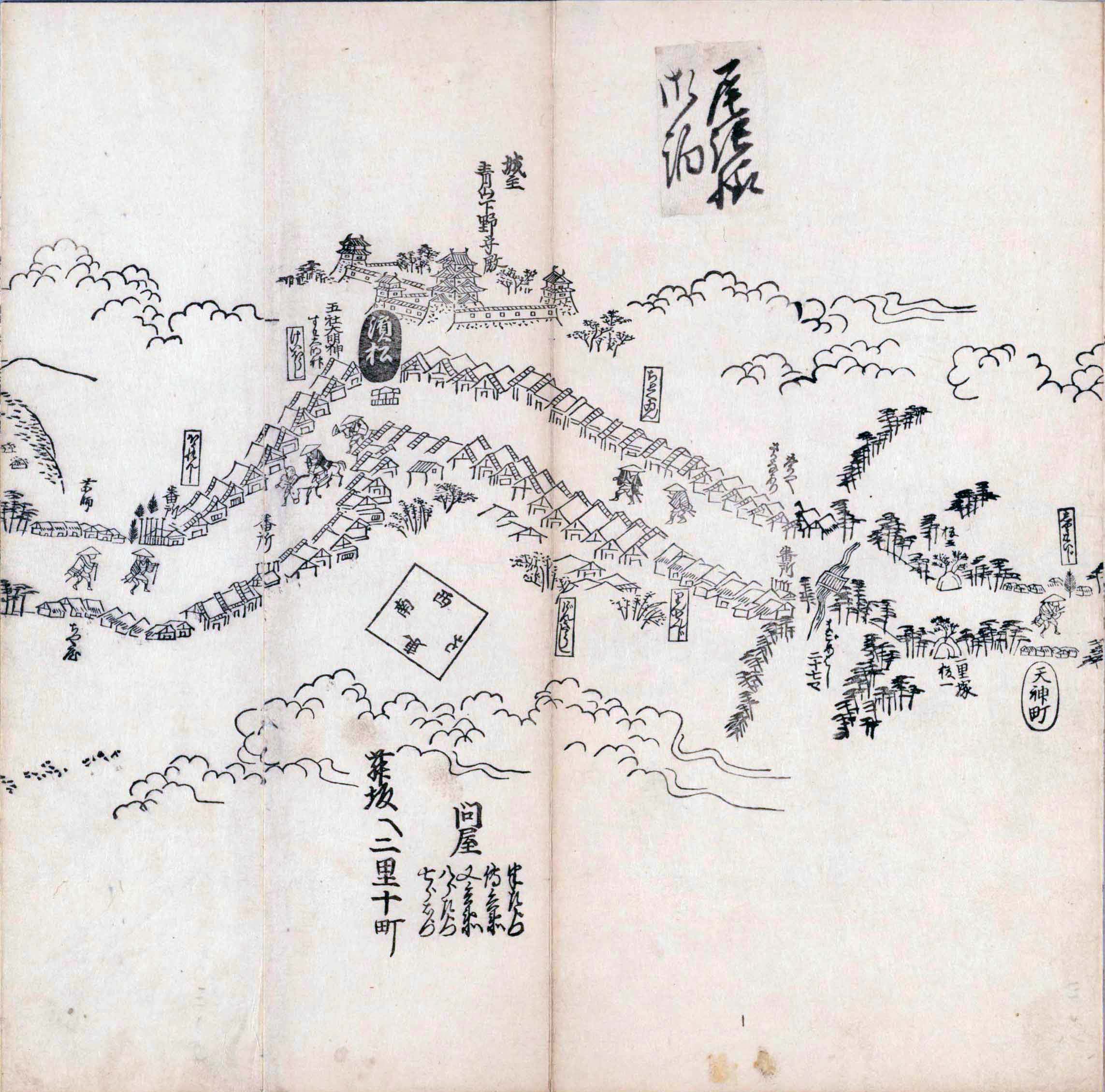 - 道路の長さが縮尺に従って正確に表され、その屈曲についても方位を知り得るように配慮されている。縮尺は三分一町(12,000分の1)と明示されており、表題の「分間」は何分何間の略で、今日の縮尺という語に相当する。[参考:国立国会図書館デジタルコレクション]