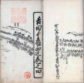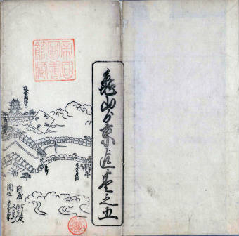 殊に世間の移り替るに随て路道に遠近出来、用に詮無し。爰に遠近道印と云人。江府の図を始て一分五間の積りに五枚にあみたて、書肆にあたえて世に流布せり又去年、一分拾五間の割を以て、分間江戸の圖と題し正改す。