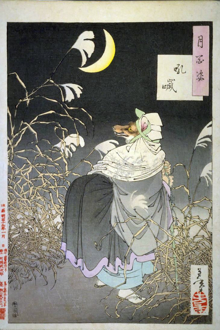 月岡芳年 (1839年・天保10年 - 1892年・明治25年)の『月百姿 』です。 - 1885年・明治18年から1892年・明治25年の、芳年数え47歳から54歳の時に発表した浮世絵の連作。