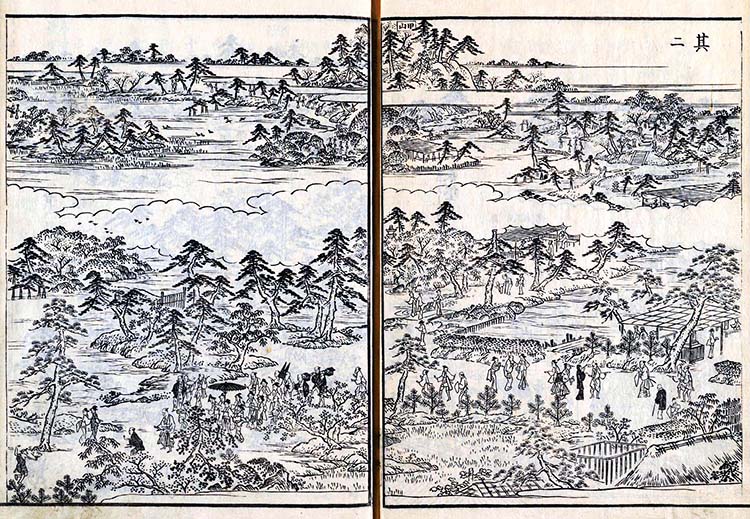 - このページでは、『江戸名所図会』に掲載された図版を直接閲覧できるようにした。画像ををクリックすると拡大して見ることができる。画像は国立国会図書館所蔵で、明るくするために当サイト独自の色調補正を行った。