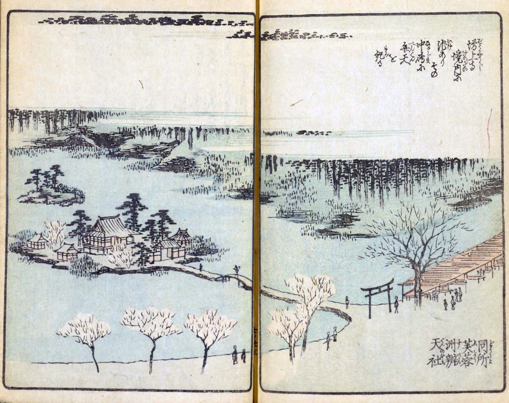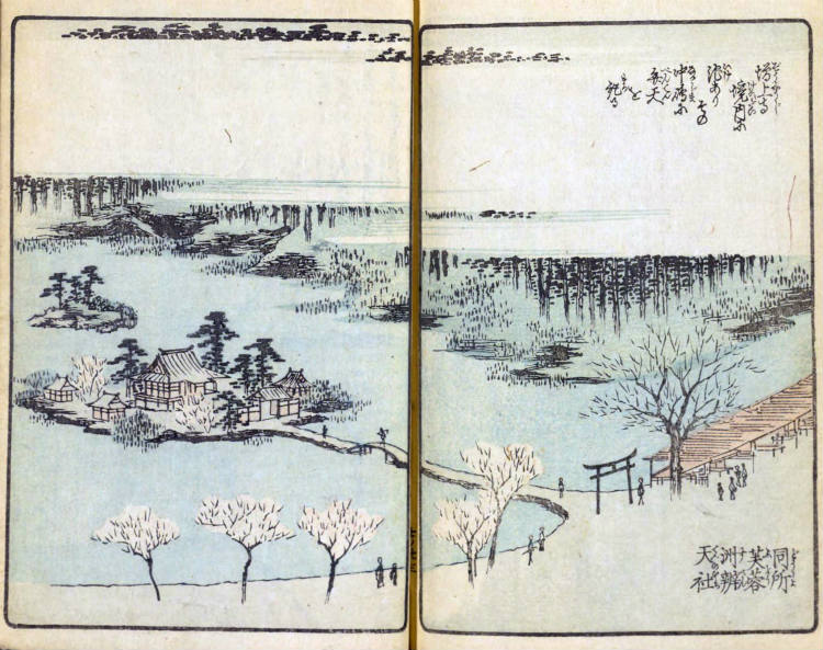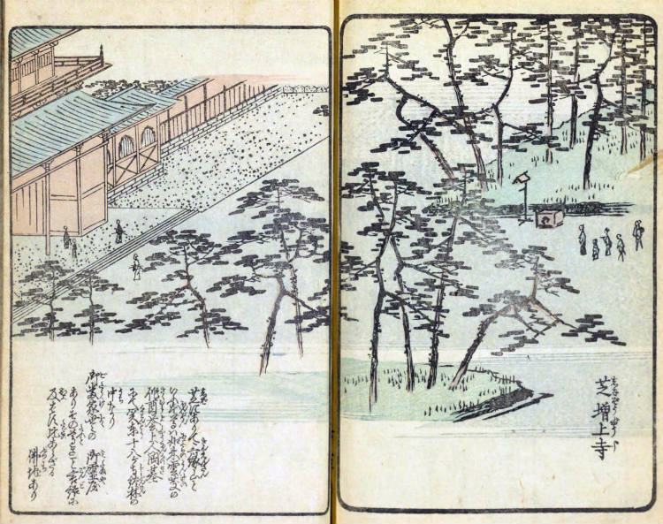 『浮世絵・錦絵』 などを見る「目次」 絵本江戸土産くずし字目次 国会図書館リンク目次 《参考》くずし字一覧 絵本江戸土産(えほんえどみやげ)・くずし字を読む= 芝 増上寺/同所 芙蓉洲弁天社 = 絵本江戸土産くずし字目次 《芝 増上寺》 《翻刻》 芝 増上寺 芝にありて三縁山といふ 本尊は如来 運慶の作 酉誉上人開基にて 関東十八ヶ寺談林の中なり 御當家世々の御霊屋あり その尊きこと言語に及ばず 比あらざる仏地あり 《現代表記》 芝(しば) 増上寺(ぞうじょうじ) 芝(しば)にありて三縁山(さんえんざん)という。本尊(ほんぞん)は如来(にょらい)、運慶(うんけい)の作、酉誉上人(ゆうよしょうにん)開基(かいき)にて、関東十八ヶ寺談林(だんりん)の中(うち)なり。御当家(ごとうけ)世々(よよ)の御霊屋(みたまや)あり。その尊(とうと)きこと言語(ごんご)に及(およ)ばず。比(たぐい)あらざる仏地(ぶっち)あり。 *御霊屋(みたまや) は、先祖の霊や貴人の霊を祭る建物。 *説明は、などの意。 *万治は、1658年から1661年。 漢字(かな) 《芝 増上寺/同所 芙蓉洲弁天社》 《翻刻》 同所 芙蓉洲辨天社 増上寺境内に池あり その中嶋に弁天を祀る 《現代表記》 同所 芙蓉洲辨天社(ふようすべんてんのやしろ) 増上寺(ぞうじょうじ)境内(けいだい)に池あり。その中島(かなじま)に弁天(べんてん)を祀(まつ)る。 *増上寺については、第九編での「赤羽根」の中で、赤羽根から見た五重の塔を描いている。第九編「赤羽根」 *広重は、名所江戸百景 でも「江戸百景余輿 芝神明増上寺」「増上寺塔赤羽根」として増上寺を描く。 『名所江戸百景』江戸百景余輿 芝神明増上寺 『名所江戸百景』増上寺塔赤羽根 *説明は、などの意。 *万治は、1658年から1661年。 漢字(かな) *この地図の初期設定での中心点は芝増上寺付近。初期設定の左の地図は関東平野迅速測図と呼ばれる地図で、明治前期の、明治13年〈1880年〉から明治19年〈1886年〉にかけての関東平野。 地図を拡大 絵本江戸土産くずし字目次