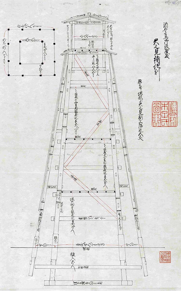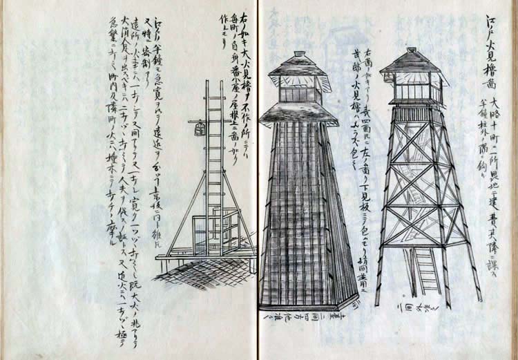 - 江戸の火の見櫓を描いた絵図を見てみます。