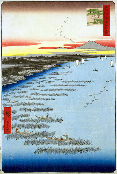 真崎辺より水神の森内川関屋の里を見る図まさきあたりよりすいじんのもりうちかわせきやのさとをみるず