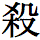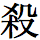 この「殺(サイ,サツ,セツ)」という字は、お使いのブラウザーによっては「殺(サツ,セツ,サイ,ころ・す,そ・ぐ)」と同じ字に見えるかも知れませんが、画数が違います。「殺(サツ,セツ,サイ,ころ・す,そ・ぐ)」は10画ですが、この「殺(サイ,サツ,セツ)」は11画で、「木」の右肩に「点」があります。 10画の「殺(サツ,セツ,サイ,ころ・す,そ・ぐ)」は、JIS規格では「3B26」に、Unicodeでは「6BBA」が割り当てられていますが、11画の「殺(サイ,サツ,セツ)」はJIS規格にはなく、Unicodeでは「F970」が割り当てられています。 殺(サイ,サツ,セツ)(11画) 殺(サツ,セツ,サイ,ころ・す,そ・ぐ)(10画) |