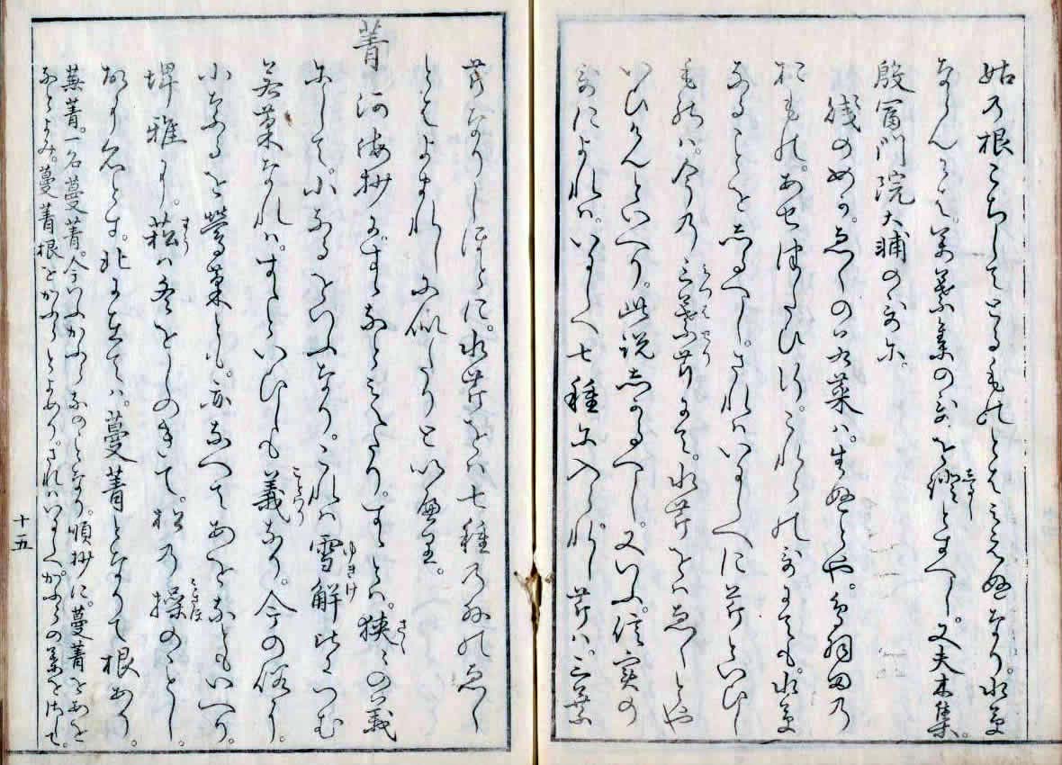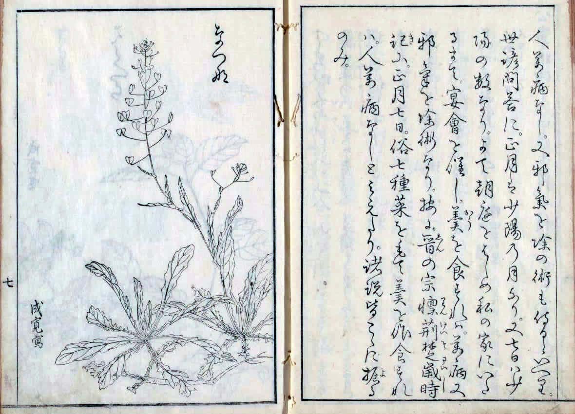 [14] 【参考】曽永年(そうながとし) 著『春の七くさ・春の七草・春菜考(はるなこう)』 = 春の七草・春の七種 = 春の七草 七草がゆの作り方 秋の七草 秋の七草の家紋 夏の七草 冬の七草 七草の英名 春の七草・春の七種 はるのななくさ ※ページ内の画像は、クリックして拡大することが出来ます。 前へ 1 2 3 4 5 6 7 8 9 10 11 12 13 14 15 16 17 次へ [14] 【参考】曽永年(そうながとし) 著『春の七くさ』 寛政12年・1800年(『春の七草』『 春菜考(はるなこう) 』の並列タイトルが付けられている) [1] (*表紙との合成) [2] [3] [4] [5] [6] [7] [8] [9] [10] [11] [12] [13] [14] [15] [16] [17] [18] [19] [20] [21] [22] 『春の七くさ・春の七草・ 春菜考 ( はるなこう ) 』 江戸時代後期の、寛政12年・1800年に、 曽永年(そうながとし)によって書かれた文献(国立国会図書館所蔵) 前へ 1 2 3 4 5 6 7 8 9 10 11 12 13 14 15 16 17 次へ このページは、例のいくつかをあげ編集しています。 学習や研究などにお使いの際は、辞典・専門書などでご確認ください。(このページを利用され、何らかの不利益や問題が生じても、当サイトは一切の責を負いかねます。あらかじめご了承ください) 本サイトは編集著作物です。データの無断転載等を禁じます。著作権侵害という犯罪