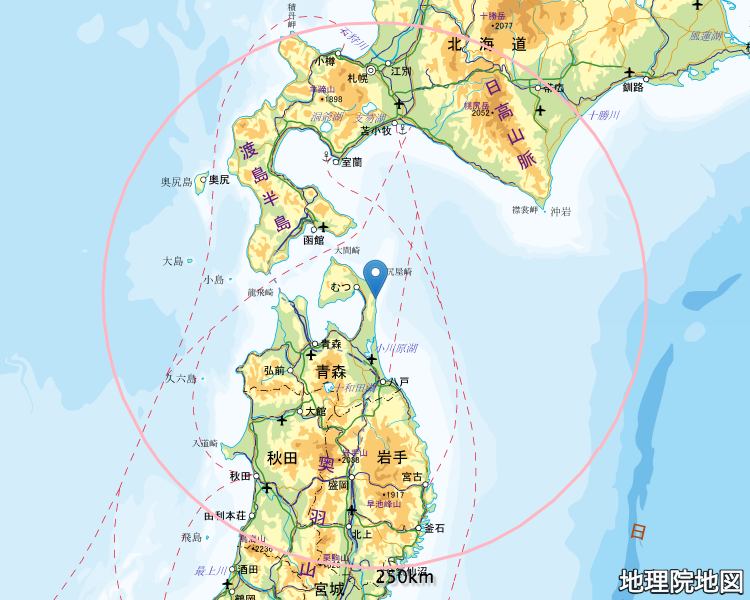 - 表示される距離はこの地図独自の計測機能によるもので、行政が発表する避難計画や給付金の対象地域などを調べることや、詳細な距離を測ることは目的としておりません。参考としてご覧ください。