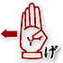 手のひらを相手に向けた状態で、親指と中指、薬指の先を合わせ、人差し指と小指を立てる。 *影絵の「キツネ」の形。 |