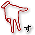 手の甲を相手に向けた状態で横にし、親指、人差し指、中指を開いて伸ばす。他の指は握る。 | 「し」を下に向けた形。手の甲を相手に向けた状態で下にし、親指、人差し指、中指を開いて伸ばす。他の指は握る。 | 手のひらを相手に向けた状態で、中指だけ垂直に立てる。 | 人差し指を伸ばし、「それ」と指す仕草をする。 | ||||||||||